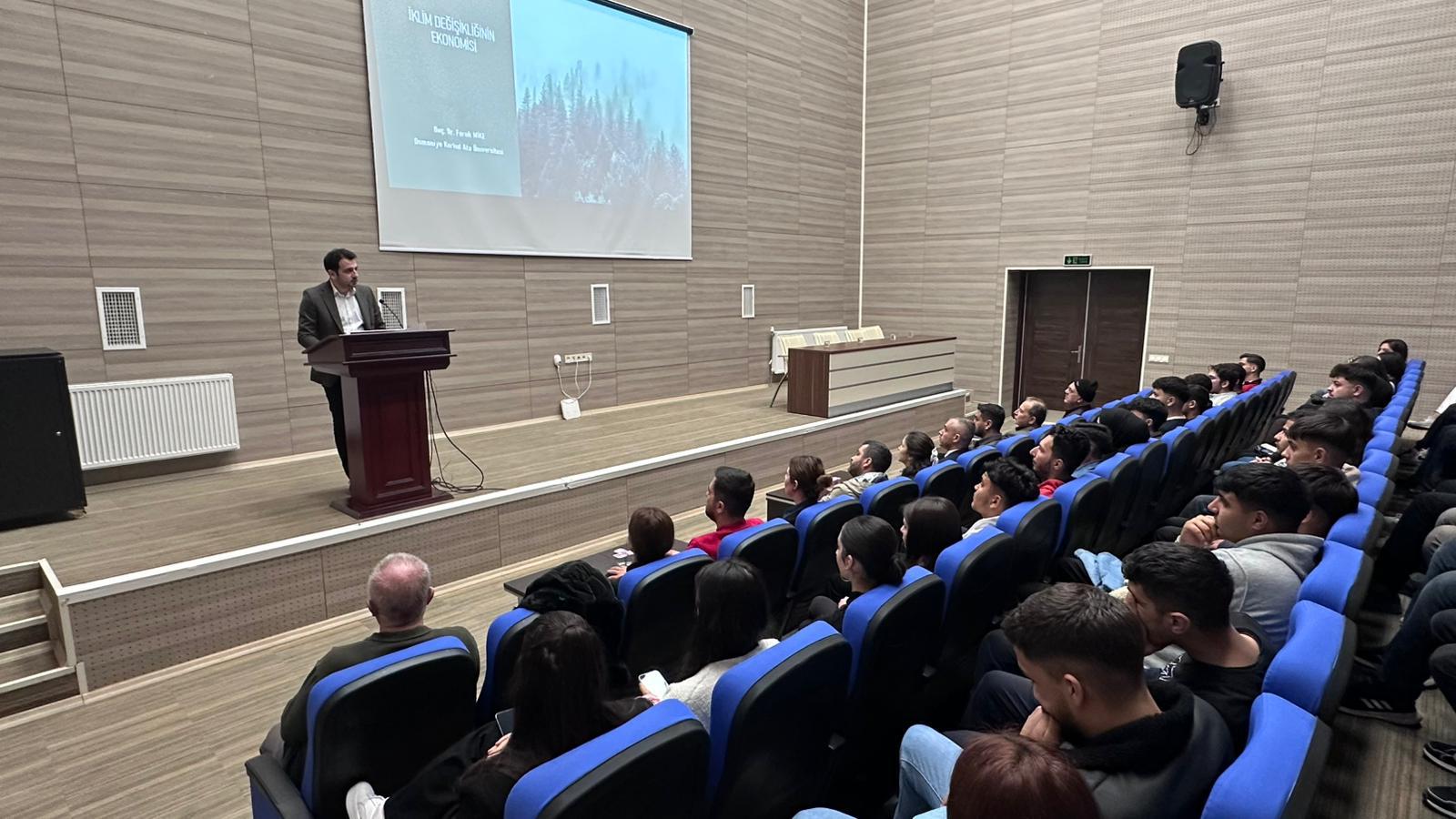 Yüksekokulumuzda 26 Kasım 2025 Çarşamba İklim Değişikliğinin Ekonomisi Konferansı verildi. Konferans, okulumuz öğretim üyesi Doç. Dr. Faruk Mike tarafından verildi.