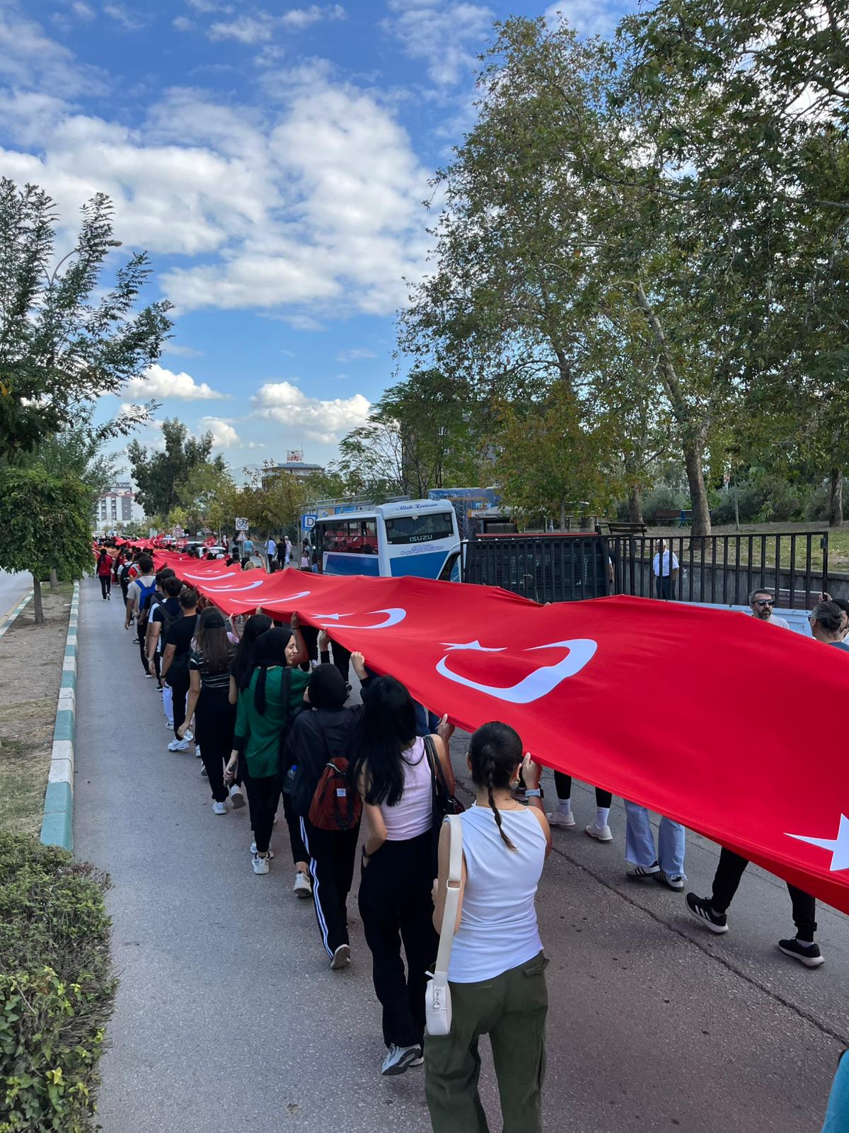 Gençlik ve Spor İl Müdürlüğü ile Amatör Spor Kulüpleri Federasyonu iş birliğinde düzenlenen etkinlikte, Üniversitemiz yerleşkesinden başlayan yürüyüşte gençler 50 metrelik dev Türk Bayrağı taşıyarak Hokey Sahası’na kadar yürüdü. Renkli görüntülere sahne olan kortej, hem sporun birleştirici gücünü hem de gençlerin milli değerlere olan bağlılığını gözler önüne serdi. Etkinlik boyunca coşku ve dayanışma duygusu hâkim olurken, Amatör Spor Haftası’nın üniversitemiz öğrencileri arasında spor kültürünü yaygınlaştırma ve farkındalık oluşturma açısından büyük önem taşıdığı vurgulandı.