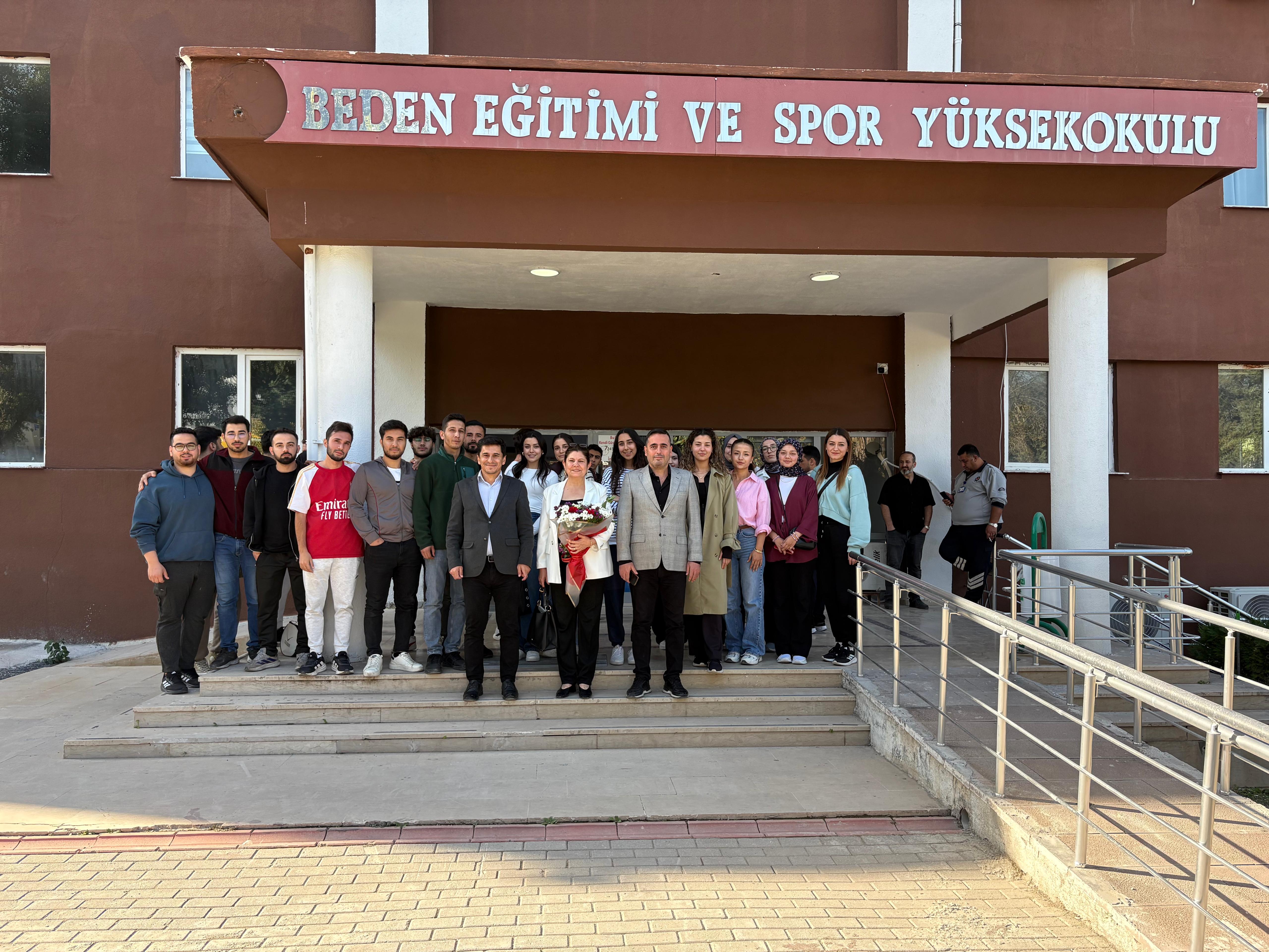 Engelli hakları, erişilebilirlik ve gönüllülük çalışmaları üzerine yapılan bu değerli söyleşi sonrasında Beden Eğitimi ve Spor Yüksekokulu Müdürümüz Doç. Dr. Servet REYHAN, Ali Boyraz hocamıza ve Sayın Sultan ERAT hanımefendiye çiçek takdim ederek teşekkür etti.