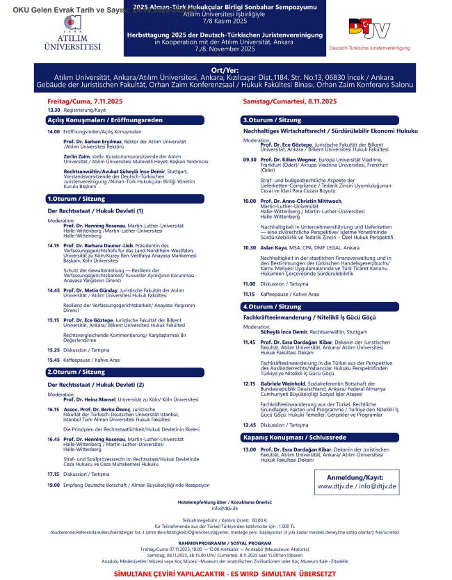 2025 Alman - Türk Hukukçular Birliği Sonbahar Sempozyumu (Herbsttagung 2025 der Deutsch-Turkischen Juristenvereinigung)