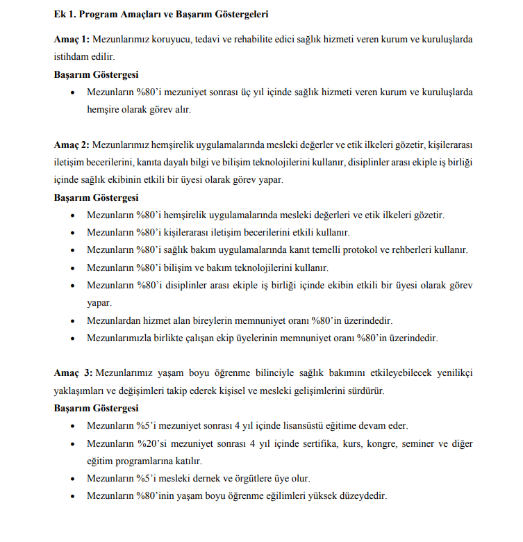 Standart 1 Başkanlık Program Amaç ve Başarım Göstergelerinin Duyurulması