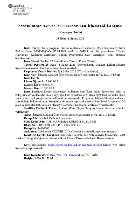 XXVIII. Deney Hayvanları Kullanım Sertifika Kursu