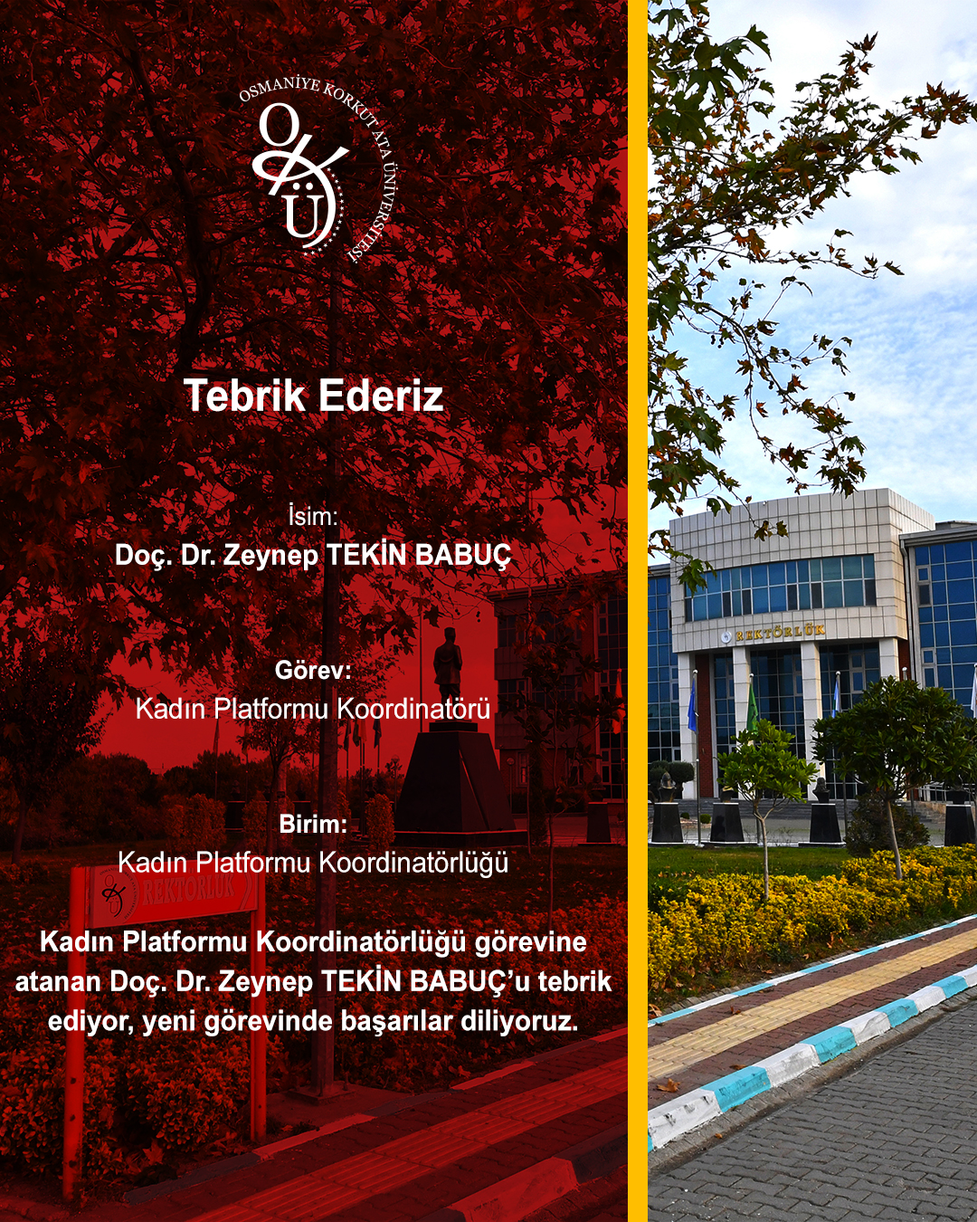 Doç. Dr. Zeynep TEKİN BABUÇ Kadın Platformu Koordinatörlüğü Görevine Atandı