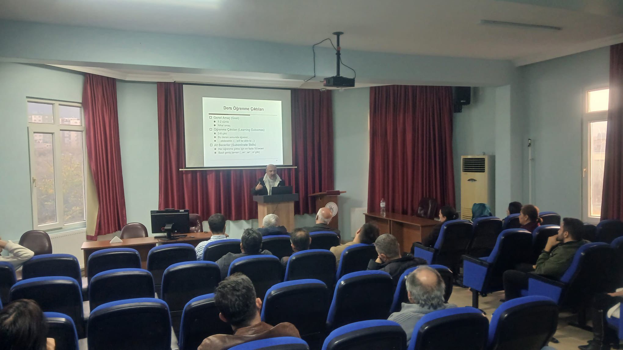 Toplantı kapsamında Öğr. Gör. Ferhat Fatih Özgür, Bologna sürecine ilişkin güncel gelişmeler ile yüksekokul bünyesinde sürdürülen uyum çalışmalarına dair kapsamlı bir sunum gerçekleştirdi. Sunumda; öğrenci merkezli öğrenme, yeterlilik temelli değerlendirme ve program akreditasyonu konularında detaylı bilgiler paylaşıldı.