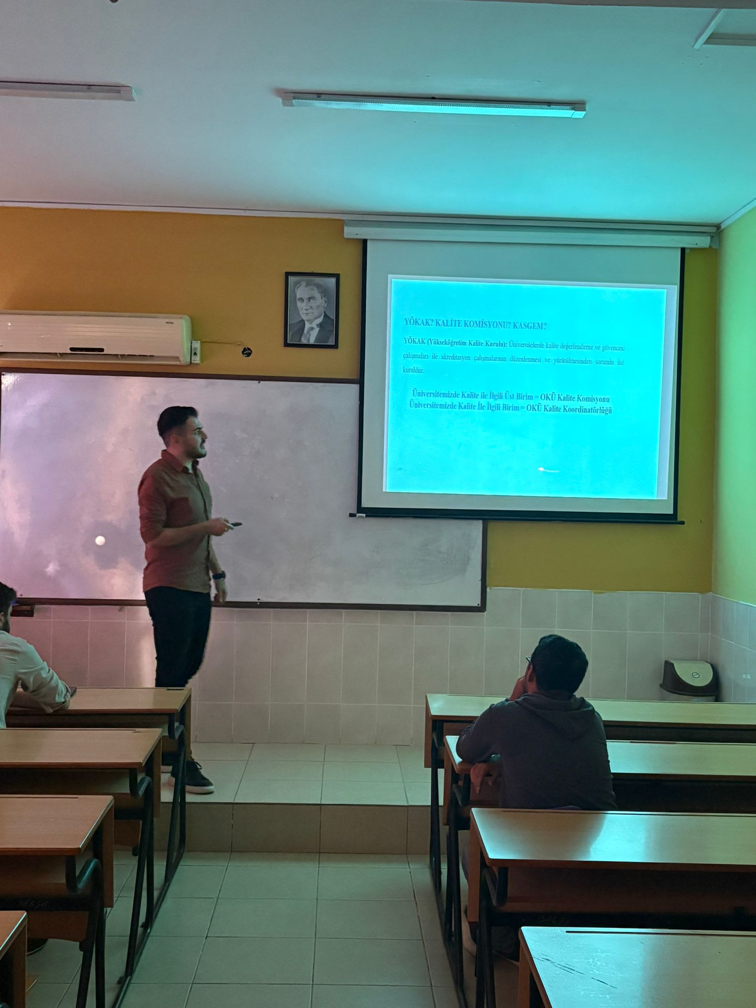Sunumda, Yükseköğretim Kalite Kurulu (YÖKAK), Kurumsal Akreditasyon Programı (KAP), OKÜ Kalite Komisyonu ve Kalite Koordinatörlüğü hakkında bilgilendirmeler yapılarak, öğrencilerin kalite süreçlerindeki aktif rolleri vurgulandı.