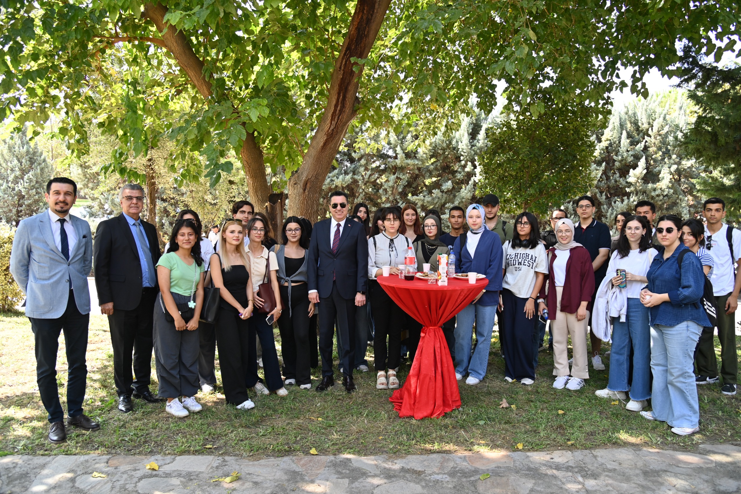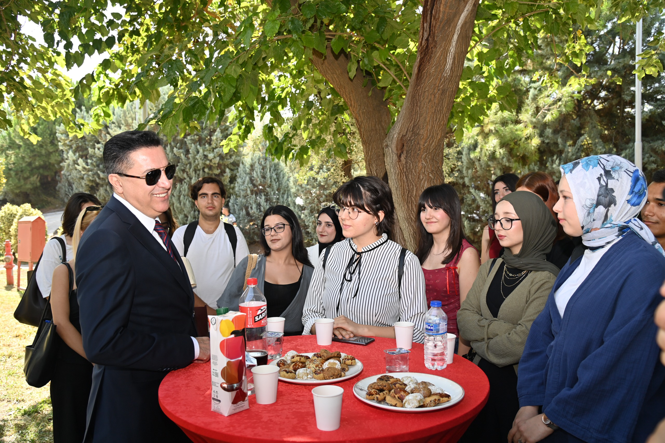 Üniversitemiz bölümlerine birinci sırada yerleşen öğrenciler için sosyal tesisler önünde özel bir buluşma programı yapıldı. Programa Rektörümüz Prof. Dr. Turgay Uzun, öğrenciler, fakülte dekanları, yüksekokul müdürleri, akademisyenler ve idari personel katıldı.