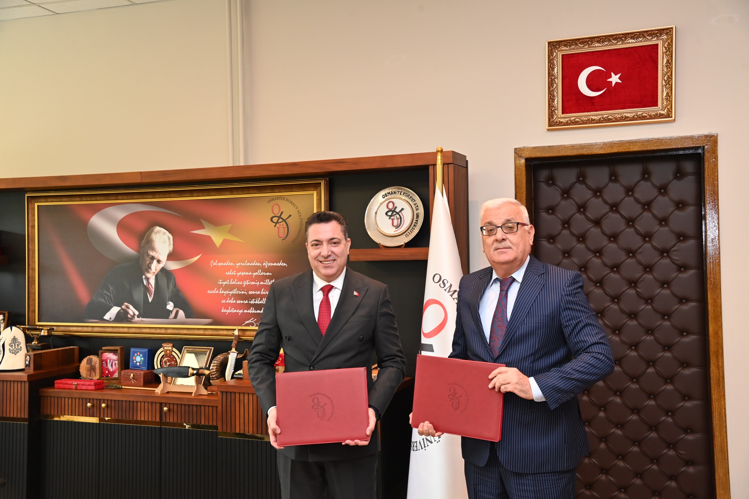 Üniversitemiz Rektörlük makamında gerçekleştirilen imza törenine, Rektörümüz Prof. Dr. Turgay Uzun ile Osmaniye İŞKUR İl Müdürü Hacı Akkoyunlu katıldı.