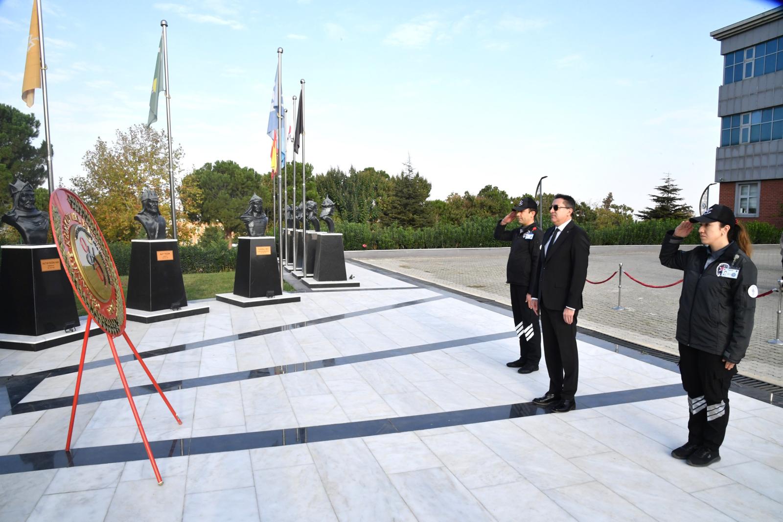 Program kapsamında Rektörümüz Prof. Dr. Turgay Uzun, Atatürk Anıtı’na Üniversitemiz çelengini sundu. Ardından saat 09.05’te Ulu Önder Mustafa Kemal Atatürk’ün aziz hatırası için saygı duruşunda bulunuldu ve Türk Bayrağı yarıya indirildi.
