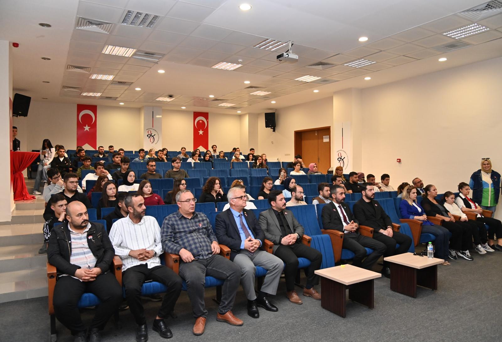 Üniversitemiz Geçmişin Sesleri Kulübü tarafından, 10 Kasım Atatürk’ü Anma Günü dolayısıyla OKÜ Kütüphane Konferans Salonu’nda bir anma programı düzenlendi.