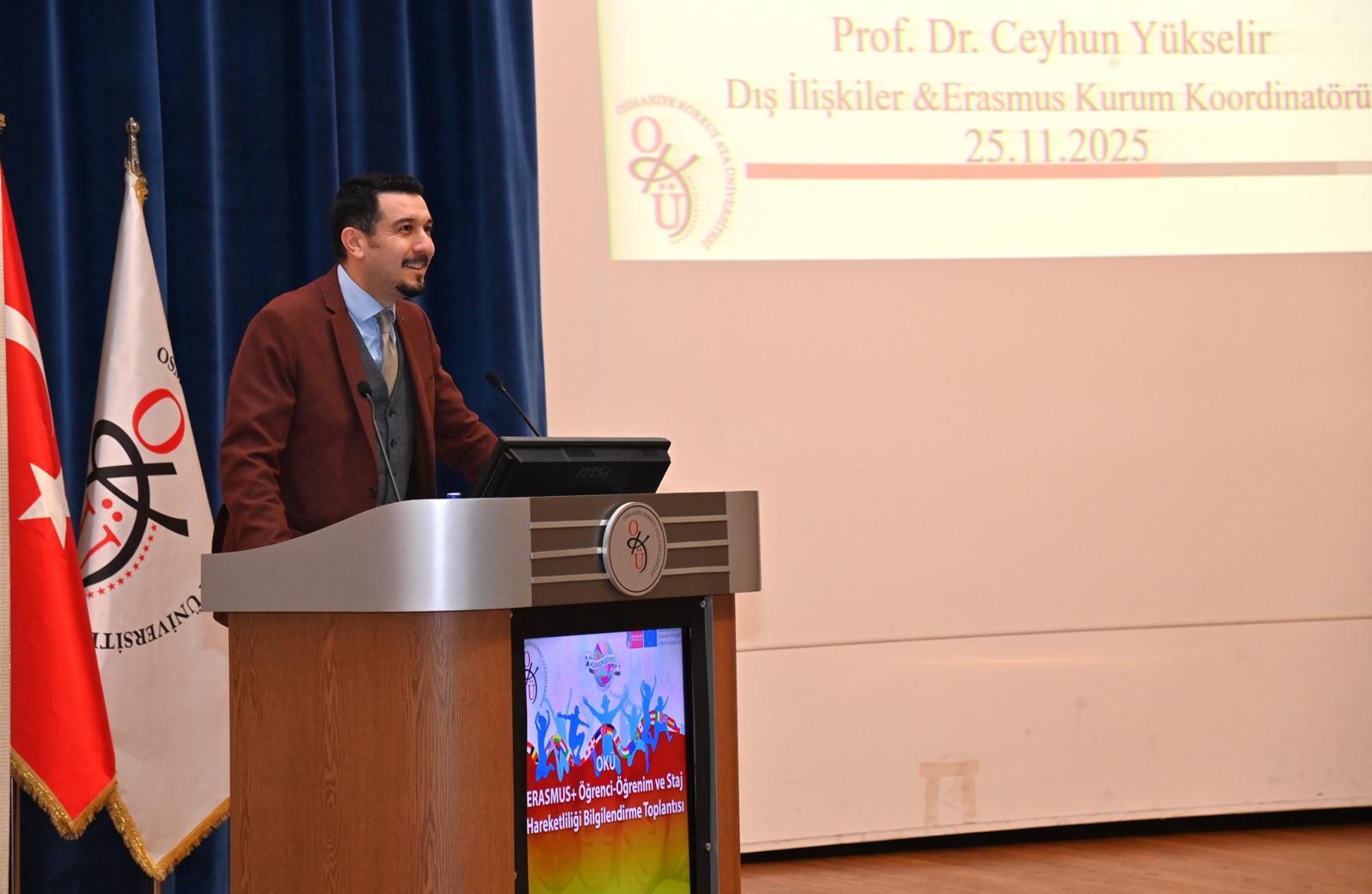Açılış konuşmasını, Rektör Danışmanı ve Dış İlişkiler Kurum Koordinatörü Prof. Dr. Ceyhun Yükselir yaptı. Prof. Dr. Ceyhun Yükselir konuşmasında, üniversitenin uluslararasılaşma vizyonu doğrultusunda ERASMUS+ programının öğrencilere sunduğu fırsatların önemini vurguladı.