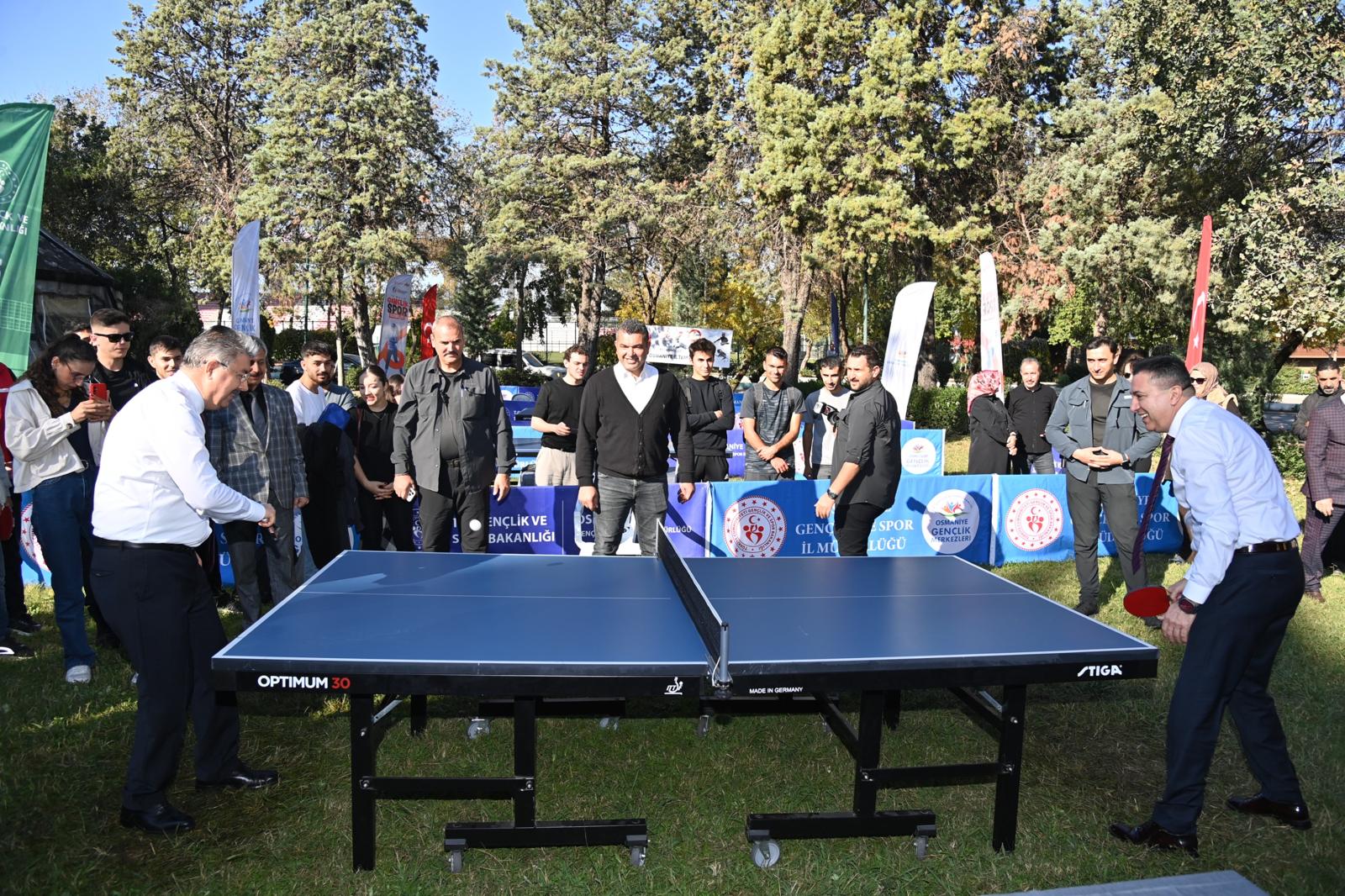 Karacaoğlan Yerleşkesi Gençlik Ofisi’nin yanında kurulan alanda gerçekleştirilen turnuvada sporcular kıyasıya mücadele etti. Etkinliği takip eden Rektörümüz Prof. Dr. Turgay Uzun ve protokol üyeleri de genç sporculara destek verdi.