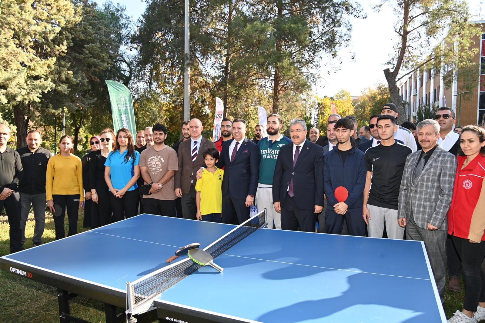 Osmaniye’de gençleri spora teşvik etmek ve masa tenisine olan ilgiyi artırmak amacıyla düzenlenen Genç Raketler Masa Tenisi Turnuvası, Üniversitemiz Karacaoğlan Yerleşkesi'nde gerçekleştirildi. Turnuva; Osmaniye Valisi Dr. Erdinç Yılmaz, Üniversitemiz Rektörü Prof. Dr. Turgay Uzun, Gençlik ve Spor İl Müdürü Yusuf Çebi, protokol üyeleri ve çok sayıda davetlinin katılımıyla başladı.