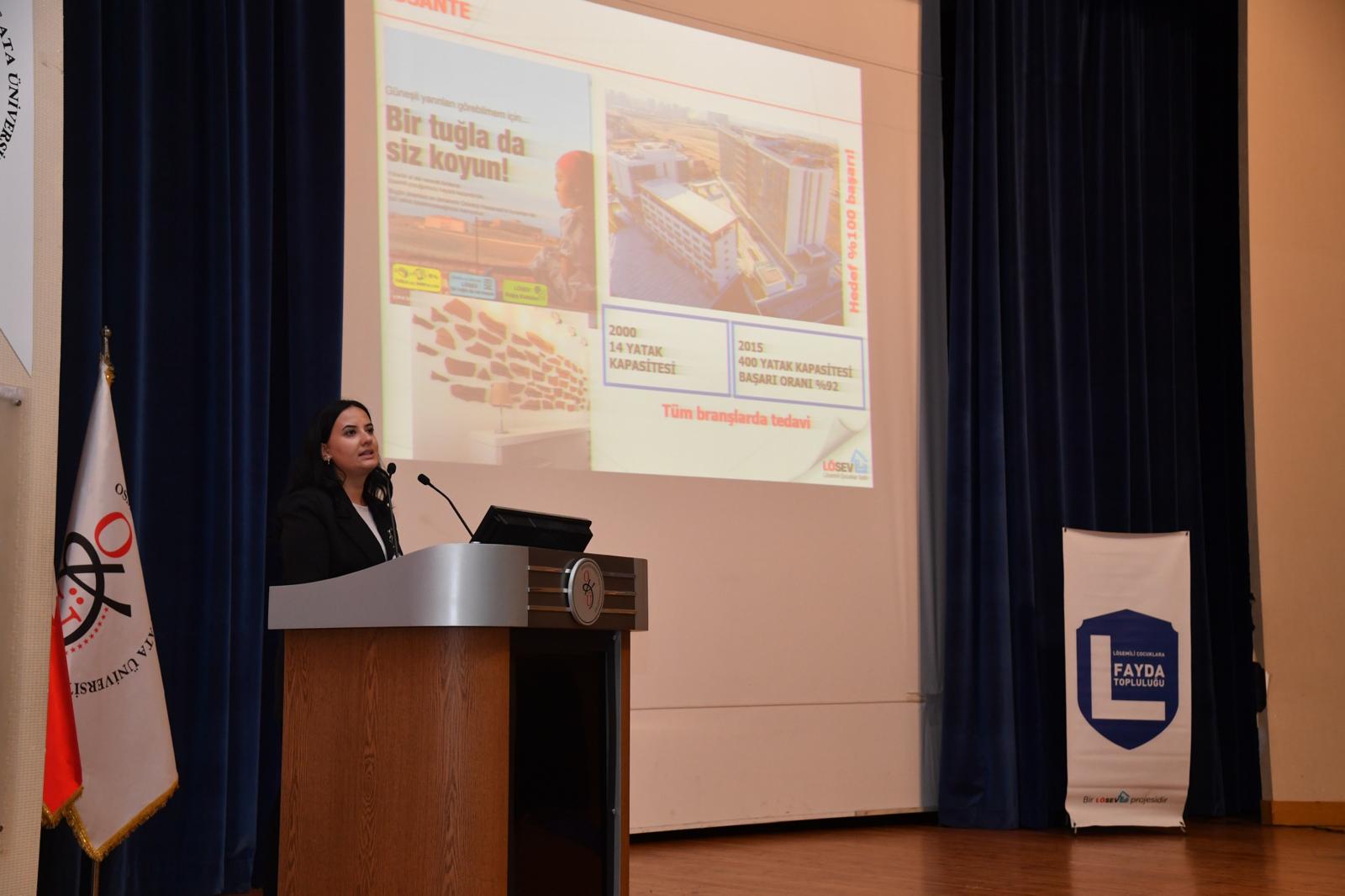 15 Temmuz Şehitler Amfisi’nde gerçekleştirilen programa konuşmacı olarak LÖSEV Temsilcisi Nadide Büşra Kaynak katıldı.