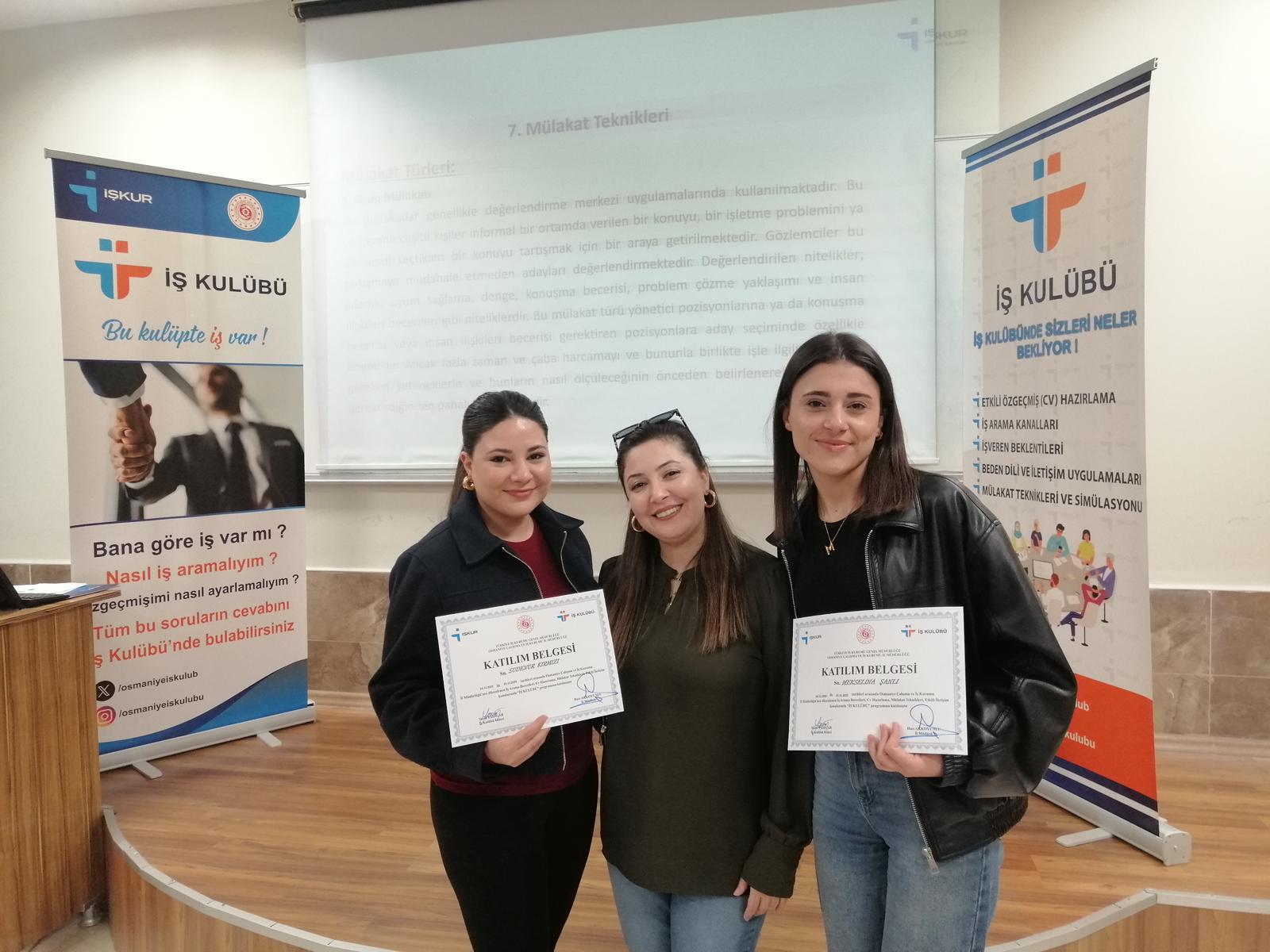 Eğitim programının kariyer yolculukları için önemli bir deneyim sağladığını ifade eden öğrenciler, OKÜ KAGEM ve İŞKUR’a teşekkürlerini iletti.