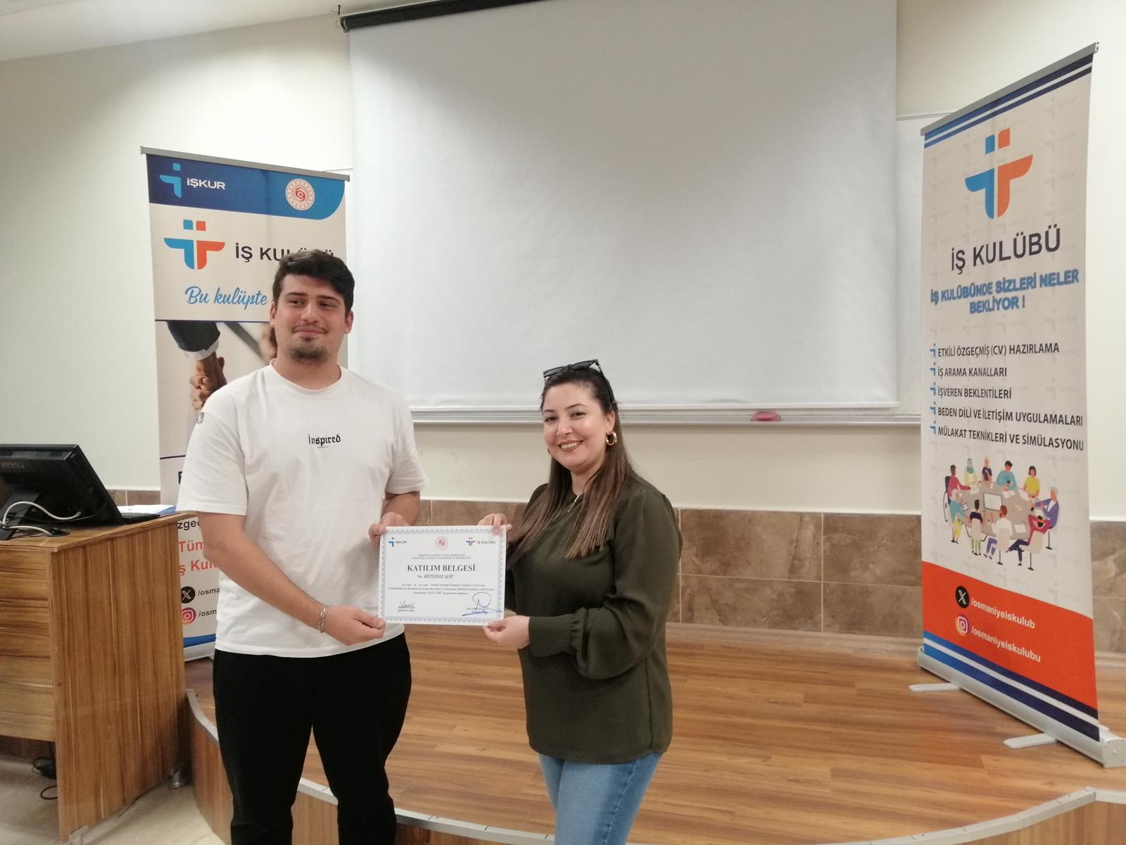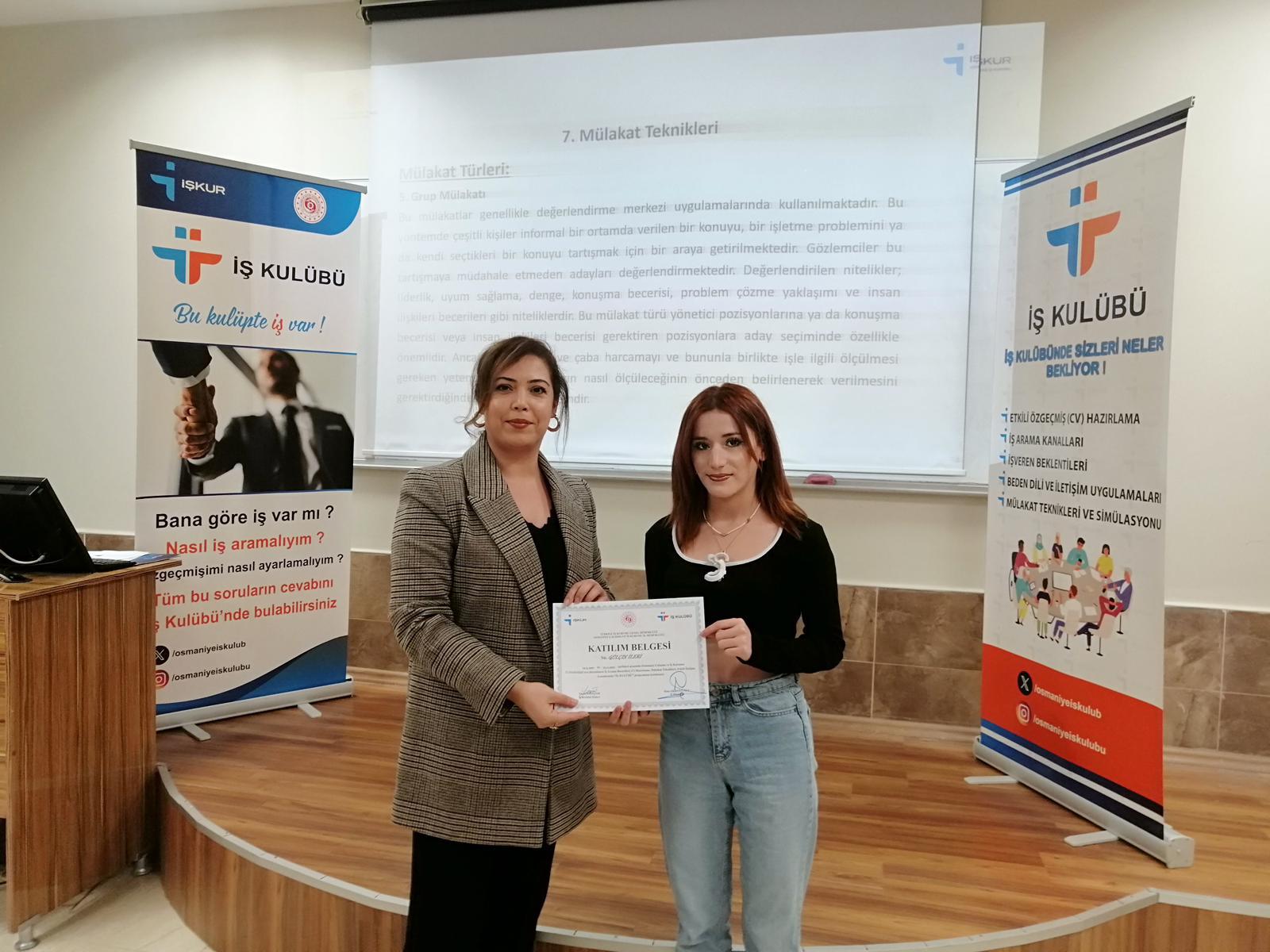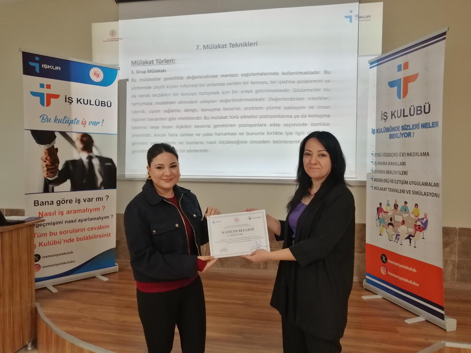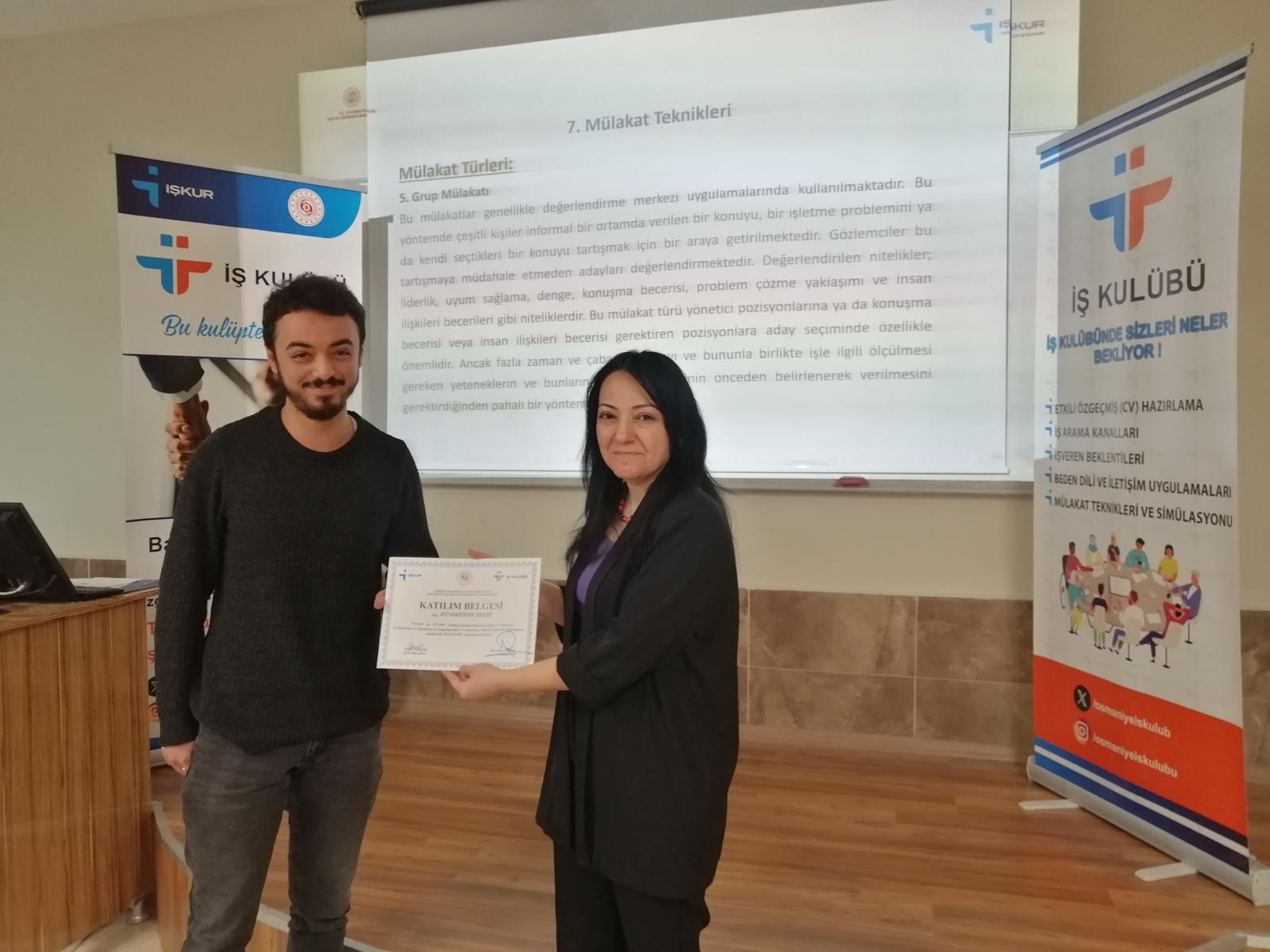 Üniversitemiz Kariyer Geliştirme Uygulama ve Araştırma Merkezi (OKÜ KAGEM) tarafından İŞKUR iş birliğiyle düzenlenen İŞKUR İş Kulübü Eğitimi, 24-25 Kasım 2025 tarihlerinde OKÜ İktisadi ve İdari Bilimler Fakültesinde başarıyla gerçekleştirildi.