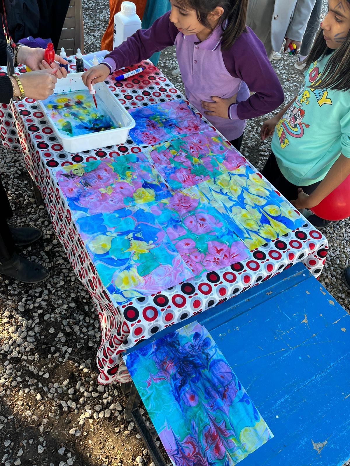 Program, sınıf içi etkinliklerin ardından açık alanda devam etti. Çocukların kültürel ve sanatsal yönlerini desteklemeye yönelik ebru sanatı, parmak boyama ve yüz boyama etkinlikleri renkli görüntülere sahne oldu. Palyaço gösterisi ve müzikli dans etkinliği ise öğrencilere unutulmaz anlar yaşattı.