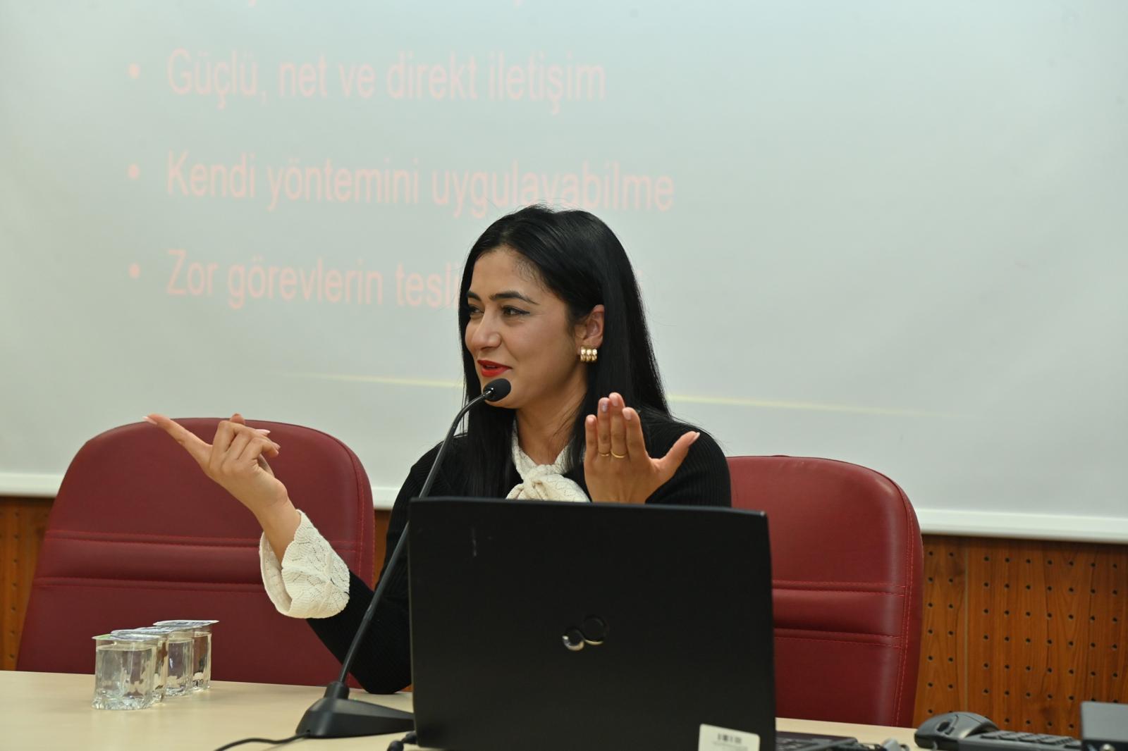 Elif Dal, konuşmasında farklı kişilik tiplerinin motivasyon kaynaklarına değinerek öğrencilerin güçlü yönlerini keşfetmelerinin kariyer planlamasında kritik bir role sahip olduğunu vurguladı. Ayrıca öğrencilere başarı, hedef belirleme ve sürdürülebilir motivasyon konularında çeşitli teknikler aktardı.