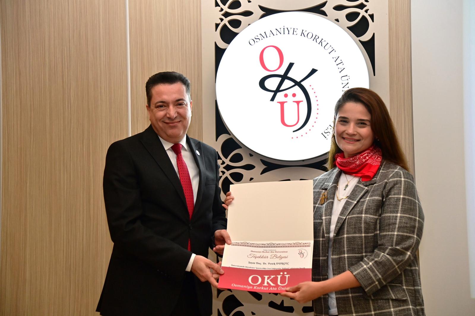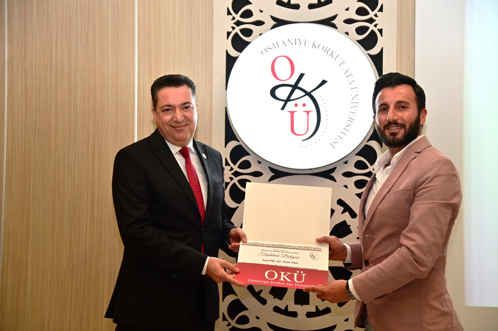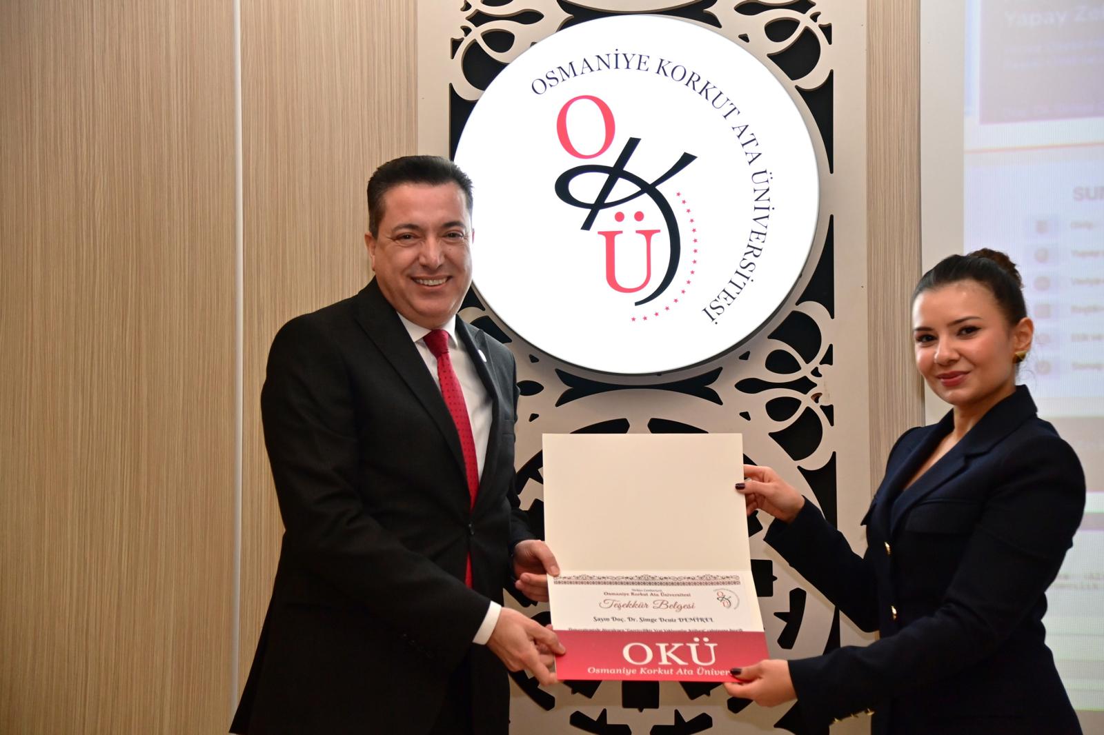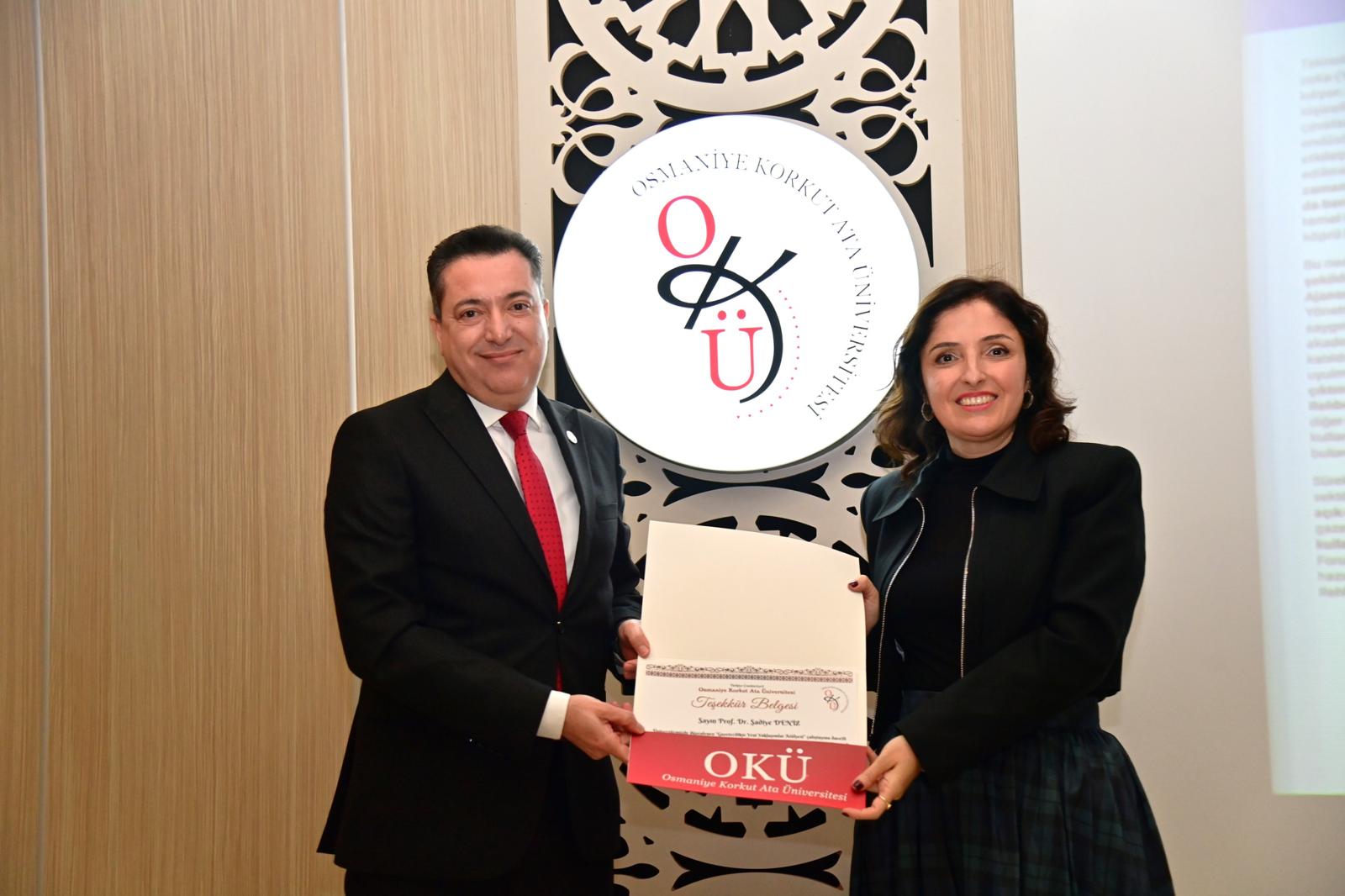 Etkinliğe konuşmacı olarak katkı sunan akademisyenlere, Rektörümüz Prof. Dr. Turgay Uzun tarafından teşekkür belgesi takdim edildi.