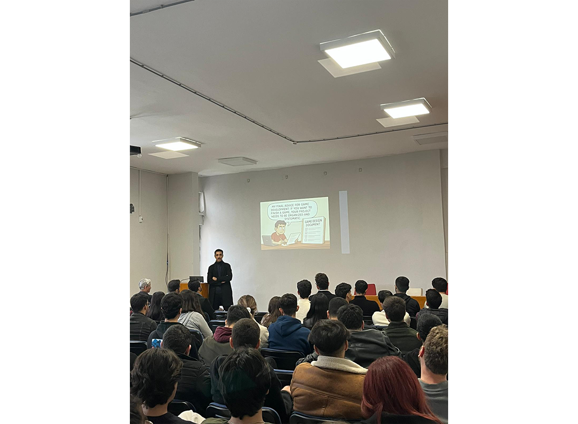 Seminerde konuşmacı olarak yer alan Alperen Akkurt, Unity oyun motoru kullanılarak oyun geliştirme süreçlerine ilişkin temel kavramları katılımcılarla paylaştı. Akkurt; oyun geliştiricisi olmak isteyen öğrencilerin izlemesi gereken yol haritası, sektörde ihtiyaç duyulan yetkinlikler ve oyun geliştirme alanındaki güncel gelişmeler hakkında bilgiler aktardı.