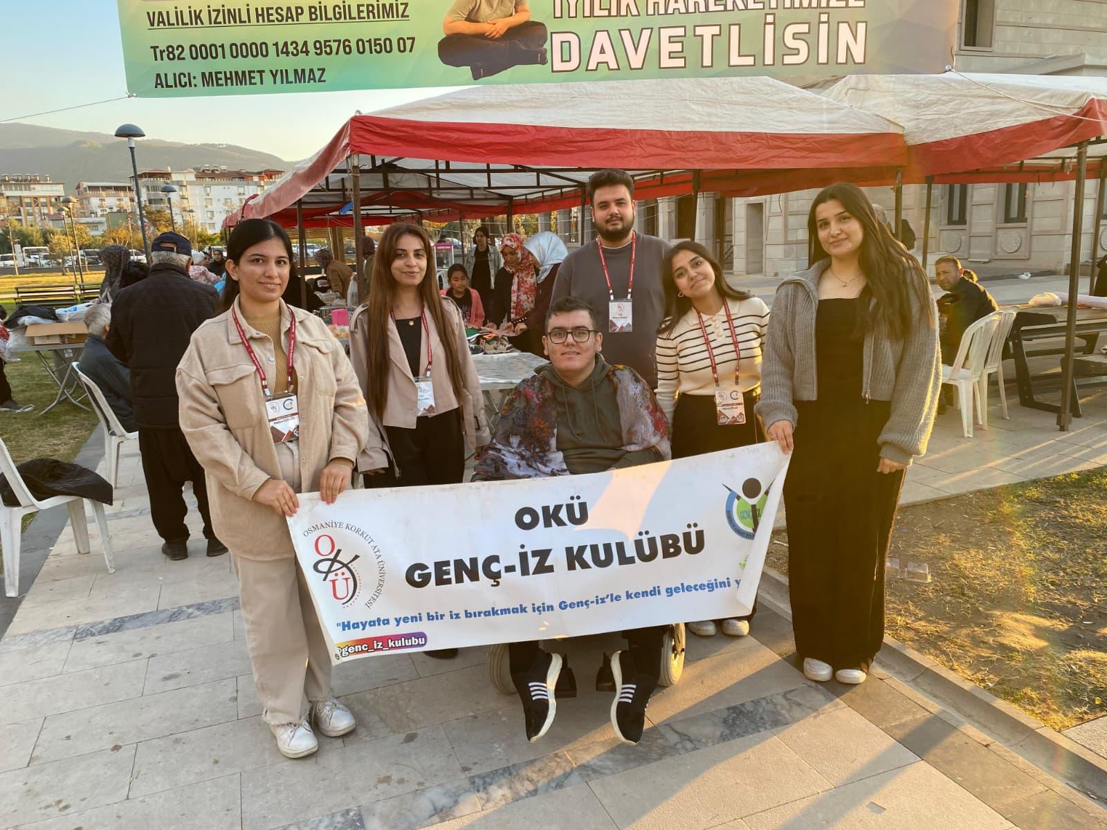13–14 Aralık 2025 tarihlerinde Osmaniye Millet Bahçesi’nde gerçekleştirilen etkinlikte, Kulüp Başkanı Merve Özay öncülüğünde OKÜ Genç-İz Kulübü üyesi öğrenciler aktif görev alarak sosyal sorumluluk bilinciyle çalışmalara katkı sundu.