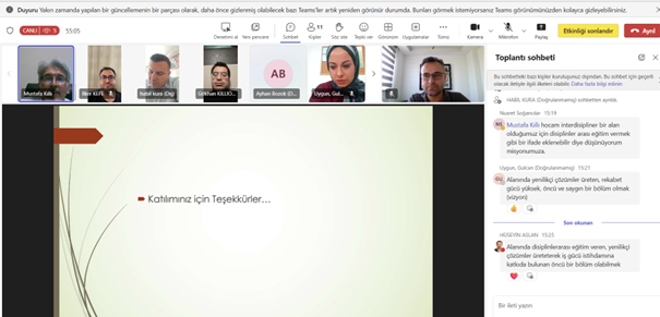 Toplantıda; katılım sağlayan dış paydaşlara bölümün mevcut durumu hakkında bilgi verildi. Ardından, bölümümüzün misyon ve vizyon ifadelerinin güncellenmesi gündem maddesi olarak ele alınarak değerlendirmelerde bulunuldu. Toplantının sonunda, dış paydaşlarla sürdürülen bu tür iş birliklerinin, eğitim-öğretim faaliyetlerine değerli katkılar sunduğu ifade edildi. Toplantı, yapılan değerlendirmelerin ardından Bölüm Başkanı Prof. Dr. Mustafa KILLI’nın kapanış konuşması ve toplantıya katılım sağlayan Bölüm Danışma Kurulu üyelerine teşekkürleriyle sona erdi.