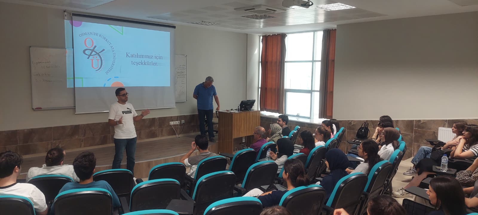 Programda yönetim bilişim sistemlerinin Türkiye'deki yeri, kariyer imkanları gibi konuların ardından Osmaniye Korkut Ata Üniversitesi Önlisans ve Lisans Eğitim-Öğretim Yönetmeliği, web sayfası içerikleri, üniversitenin sosyal imkanları, yemekhane ve spor tesislerinin kullanımı, kütüphane kullanımı, öğrenci e-postası ve uzaktan eğitim sistemi kullanımı gibi önemli konulara yer verildi.