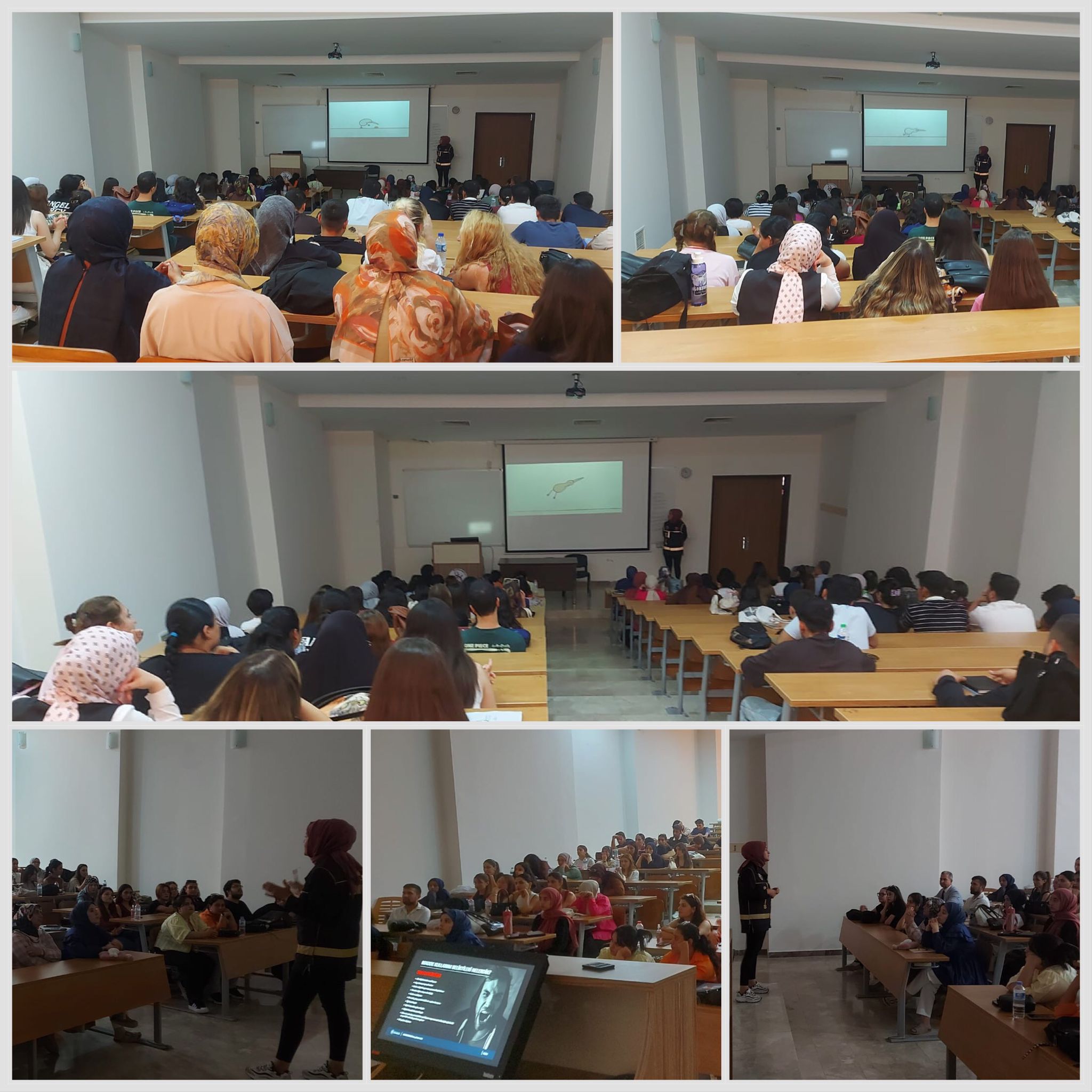 Fakültemizde, Osmaniye Valiliği İl Emniyet Müdürlüğü'nün uyuşturucu madde bağımlılığının sağlığa, insan ilişkilerine ve topluma verdiği olumsuz etkileri ortaya koymak ve özellikle üniversite gençliği arasında uyuşturucu madde kullanımını önlemek amacıyla Narkotik Suçlarla Mücadele Birimi tarafından öğrencilerimize yönelik bir konferans düzenlendi.