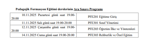 *Olası değişikleri bu duyurudan takip etmek öğrencimizin sorumluluğundadır.