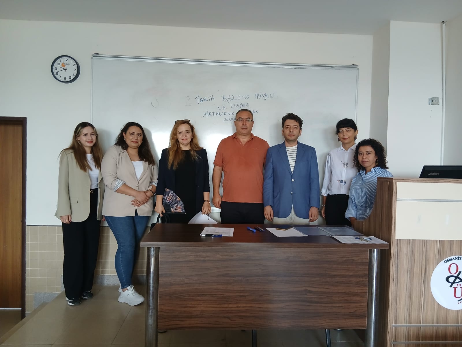 2025-2026 Eğitim Öğretim yılı Güz Yarıyılının İlk Danışma Kurulu Toplantısı 30.09.2025 saat 09:30'da D - 103 no'lu sınıfta gerçekleştirildi. Toplantıya Akademik Alt Birim Başkanı Doç. Dr. Muhammed Fazıl HİMMETOĞLU ve Akademik Alt Birim üyeleri Dr. Öğr. Üyesi Seher YÜCETÜRK, Doç. Dr. Aysel ERDOĞAN, Dr. Öğr. Üyesi Ahmet Caner ÇATAL, Dr. Öğr. Üyesi Meltem TEMİZKAN, Ayşe Vildan ÇENET ve Beyza Nur KONİ katıldılar. Toplantıda Tarih Bölümü'nün misyon ve vizyon metinlerinin revizyonu hususunda istişarelerde bulunuldu.