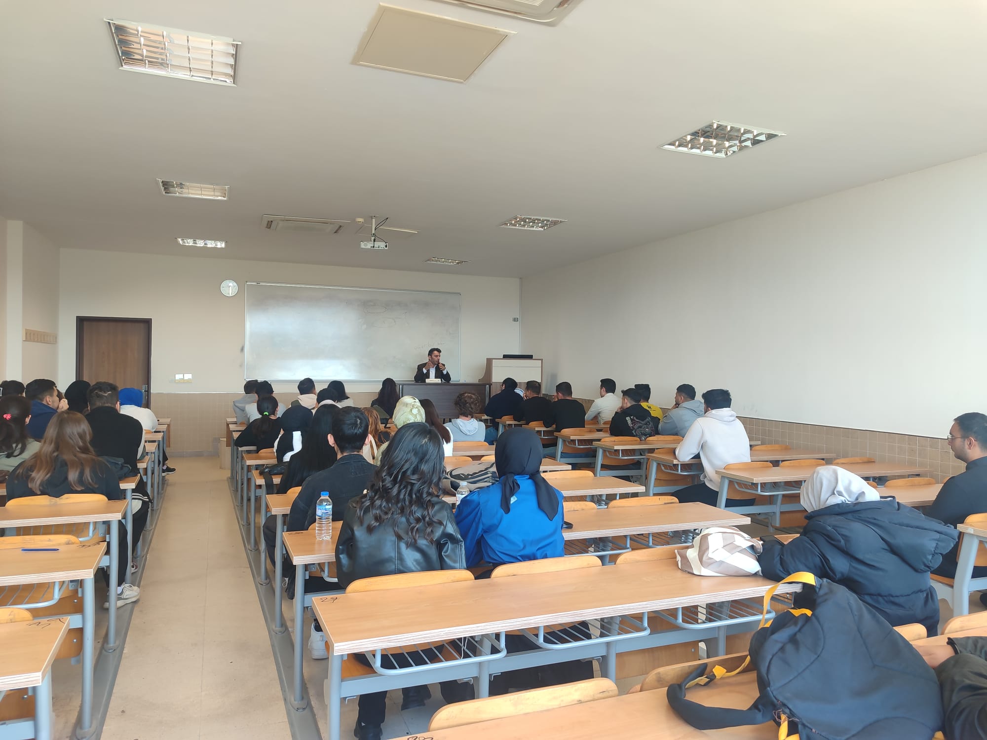 Ara Sınav Öncesi ve Sonrası Sınav Sürecine İlişkin Öğrenci Toplantısı, 20.11.2025 tarihinde Saat 09.15'te D-104 numaralı derslikte gerçekleştirilmiştir. Toplantıya Tarih Bölüm Başkanı Doç. Dr. Muhammed Fazıl HİMMETOĞLU, Bölüm Başkan Yardımcısı Dr. Öğr. Üyesi Meltem TEMİZKAN ve Tarih Bölümü öğrencileri katıldılar. Toplantı, sınavlarda öğrencilerin sınav sürecine hazırlanmasını kolaylaştırmak, sınav uygulamalarına ilişkin belirsizlikleri ortadan kaldırmak ve akademik motivasyonu artırmak amacıyla yapılmıştır. Toplantıda sınav öncesi ve sınav sonrası karşılaşılan idari ve teknik sorunlar, salon düzeni, gözetmenlik süreçleri, sınav evraklarının teslimi, dersi veren öğretim üyesinin sınav esnasında öğrencilerle iletişimi, güvenlik ve denetim konularındaki aksaklıklar gözden geçirilmiştir. Sınav süresince yaşanan lojistik aksaklıklar veya iletişim sorunları paylaşılarak sonraki sınav dönemlerinde benzer durumların önüne geçmek için çözüm önerileri sunulmuştur. Toplantı sonunda öğrencilerin sınavlara ilişkin soruları, görüşleri ve önerileri dinlenerek sınav sürecinin daha sağlıklı yürütülmesi için alınmıştır.