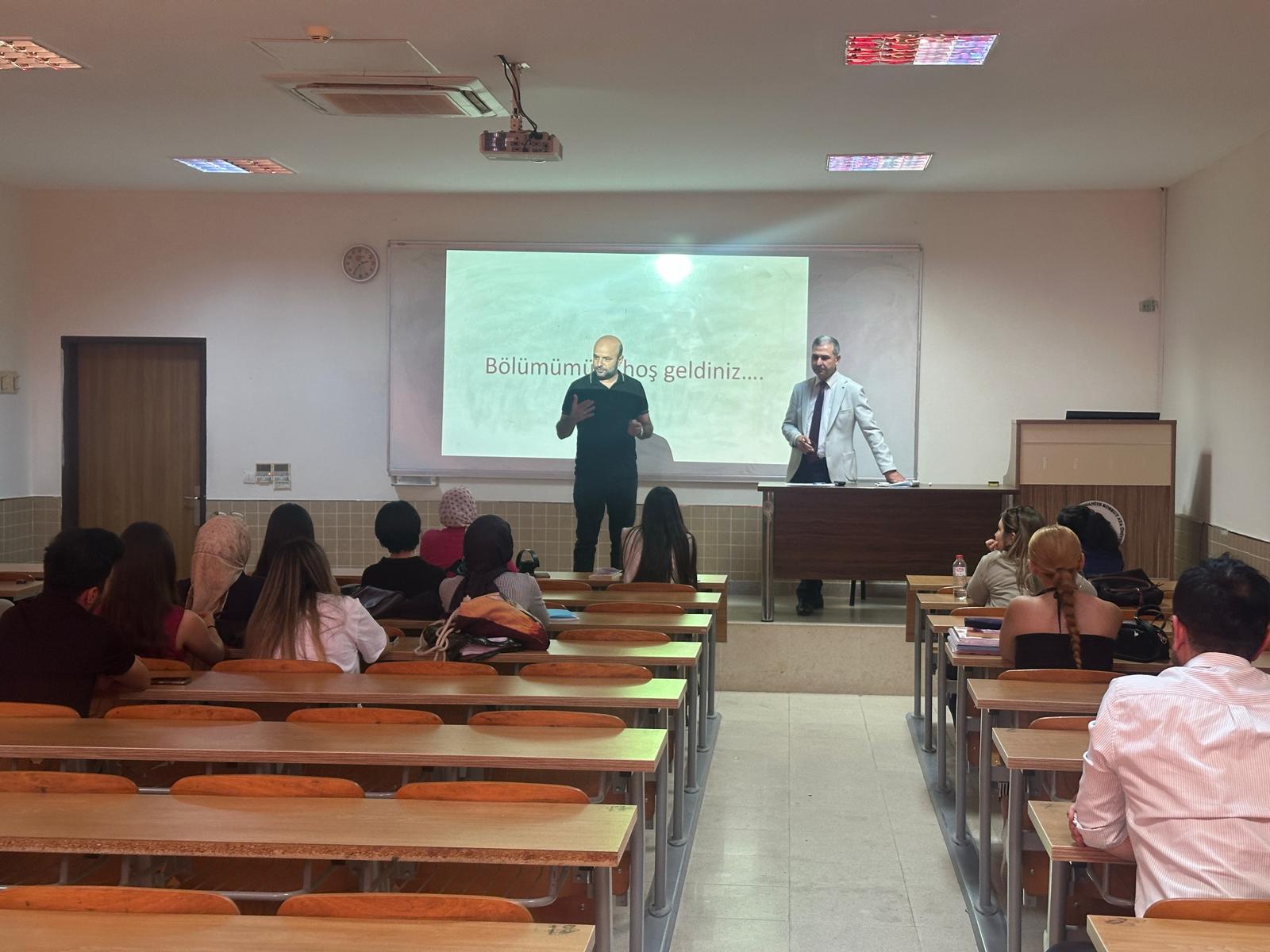 Yeni eğitim-öğretim yılına başlayan öğrencilerimizin uyum sürecinin hızlandırılması amacıyla 24 Eylül 2025 Çarşamba günü saat 14.00’da İnsan ve Toplum Bilimleri Fakültesi 2. Kat D-206 nolu derslikte Türk Dili ve Edebiyatı bölümü oryantasyon programı düzenlendi.