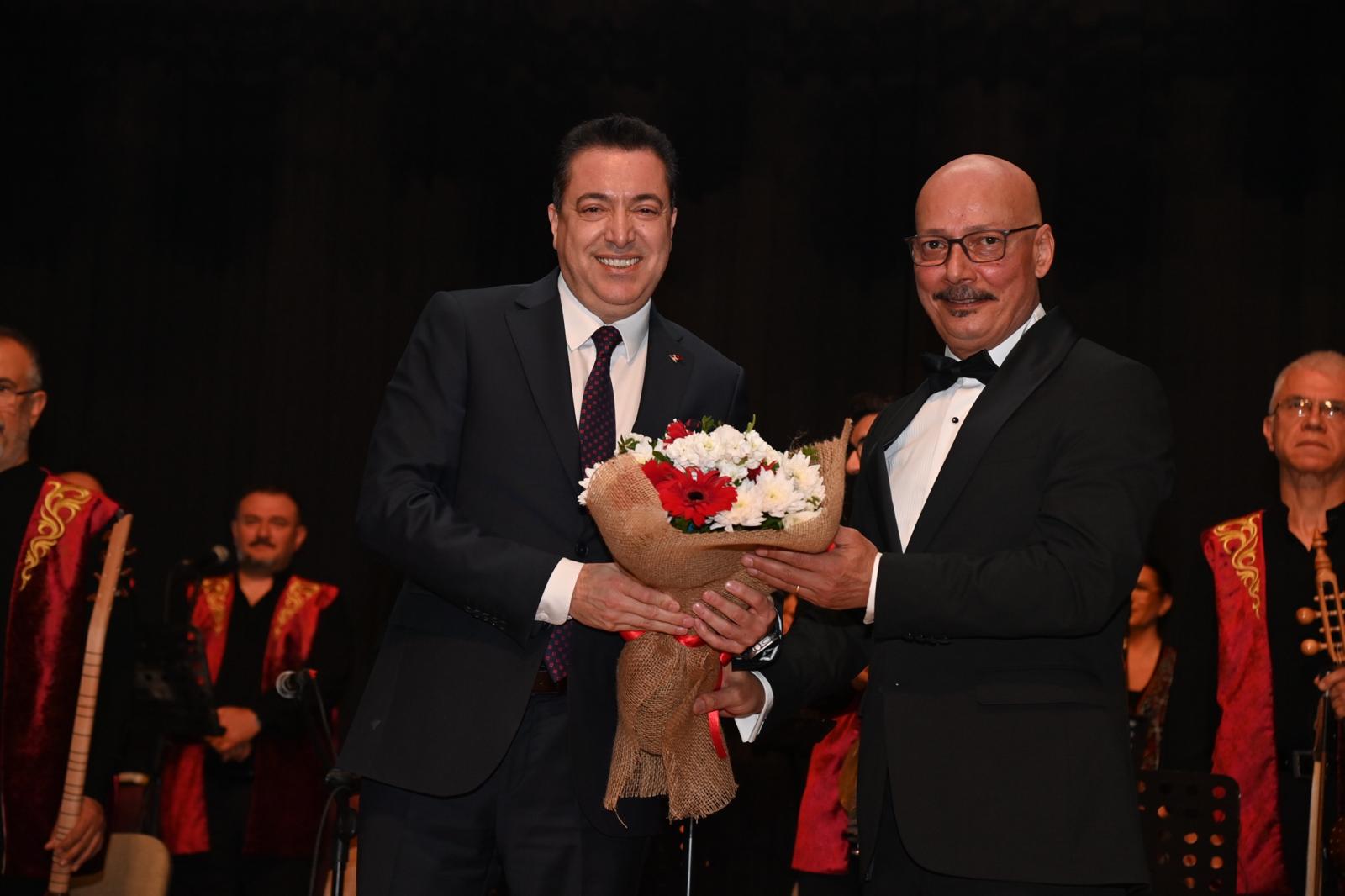 Etkinliğin, Türk dünyasının ortak kültürünü yaşatmanın yanı sıra genç nesillere Türklük bilincini etkileyici bir biçimde aktardığını ifade eden Rektörümüz, gecenin sonunda topluluk şefi Savaş Demiral’a çiçek takdim etti.