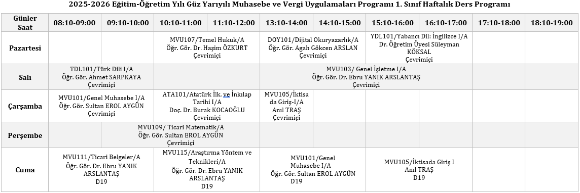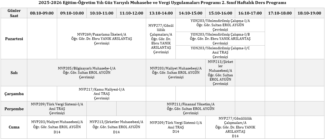 Ders Programı