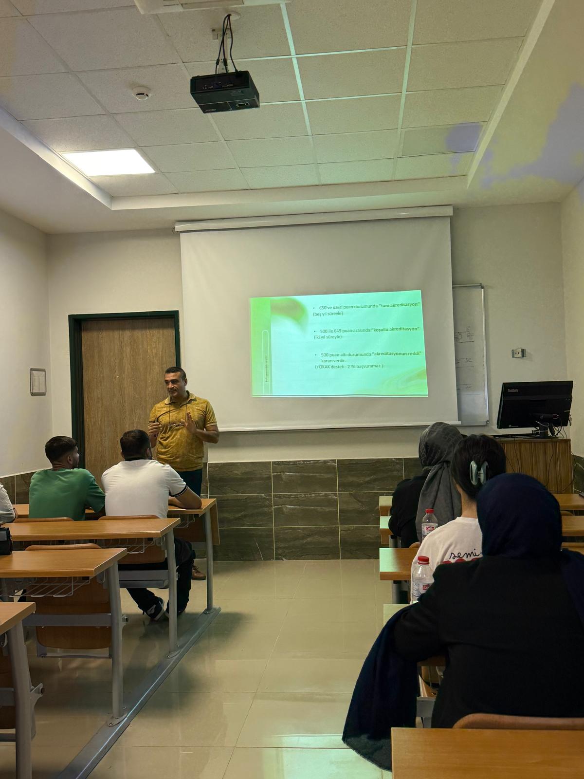 Fakültemiz Dekan Yardımcısı Doç. Dr. Yunus EKiCİ tarafından Bilgi ve Belge Yönetimi bölümü 4. sınıf öğrencilerine akreditasyon süreci hakkında bilgilendirme toplantısı düzenlenmiştir.