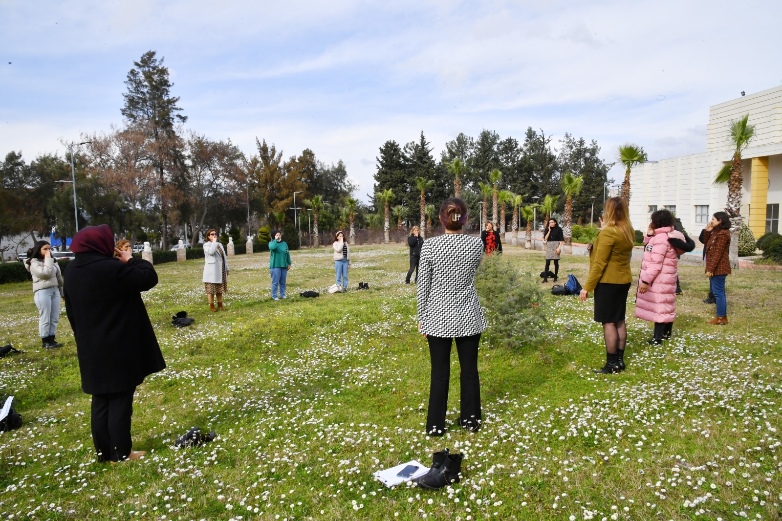 Daha sonra panelistler ve panele katılanlar Üniversitemiz 15 Temmuz Şehitler Amfisi yanında “Kadınlar, Bahara Nefesle Merhaba Diyor” başlıklı nefes egzersizine katıldı. Burada Dr. Öğretim Üyesi Nazlı Ağgün tarafından nefes egzersizi verildi.