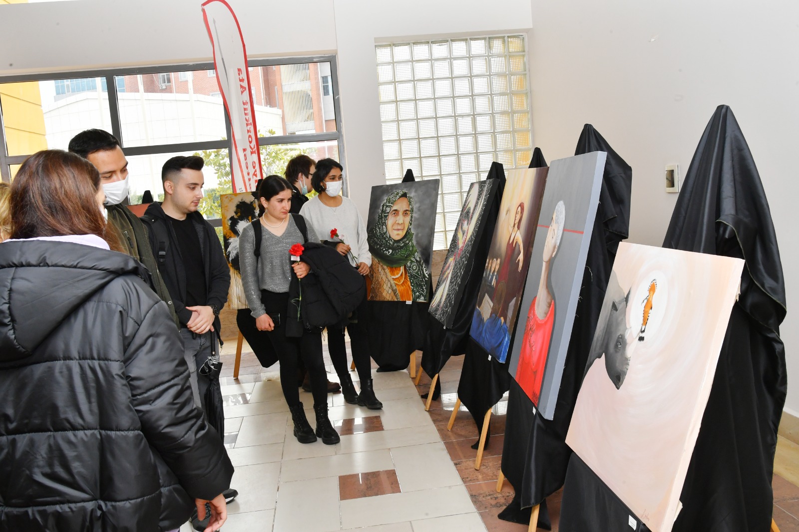 Panelin sonrasında Mimarlık Tasarım ve Güzel Sanatlar Fakültesi Resim Bölümü Yüksek Lisans Öğrencileri tarafından hazırlanan “Kadın Temalı” resim sergisi gezildi.