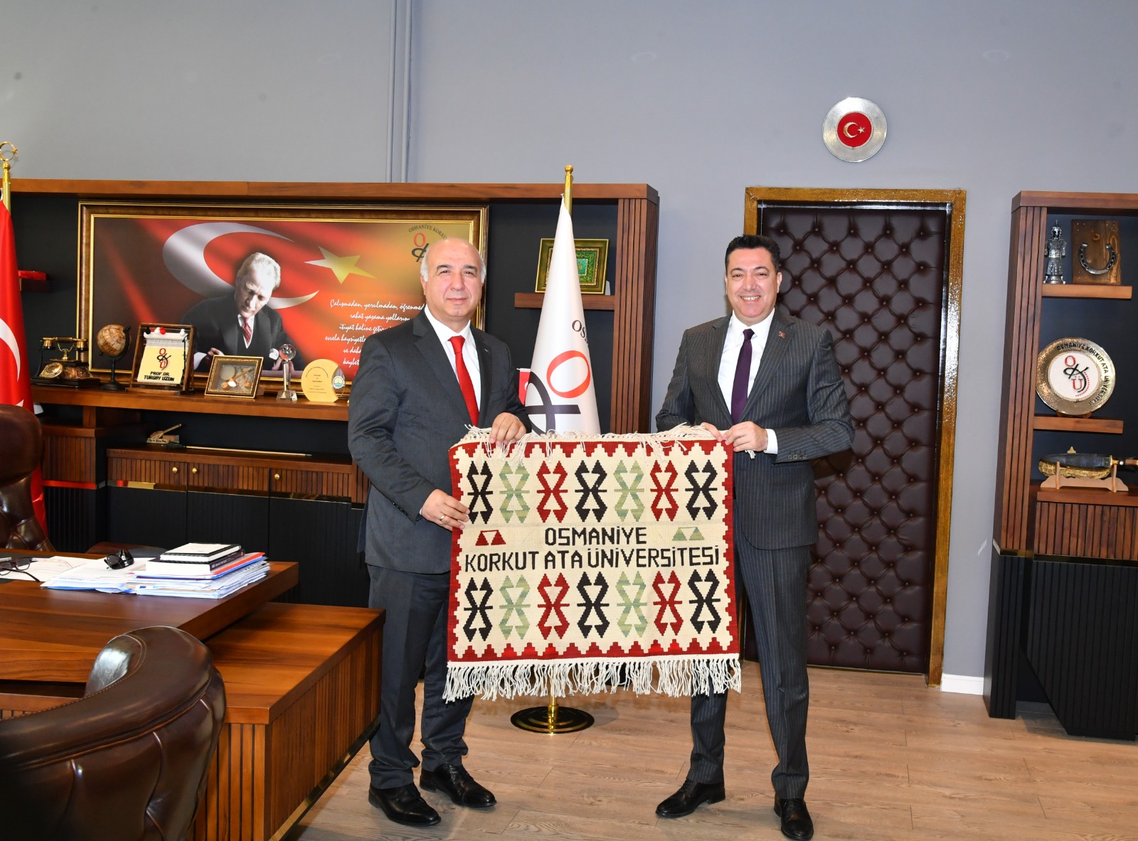 Konferans öncesinde Yükseköğretim Kalite Kurulu Başkanı Prof. Dr. Muhsin Kar, Rektörümüz Prof. Dr. Turgay Uzun’u makamında ziyaret etti.