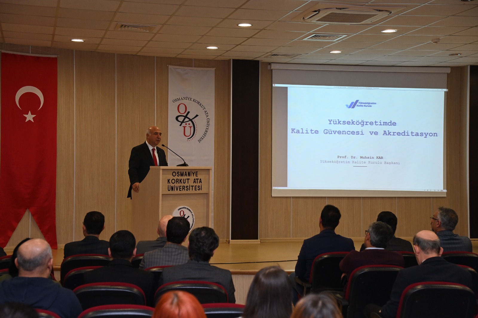 Üniversitemizde, Yükseköğretim Kalite Kurulu Başkanı Prof. Dr. Muhsin Kar’ın katılımıyla “Yükseköğretimde Kalite Güvencesi ve Akreditasyon” başlıklı konferans düzenlendi.