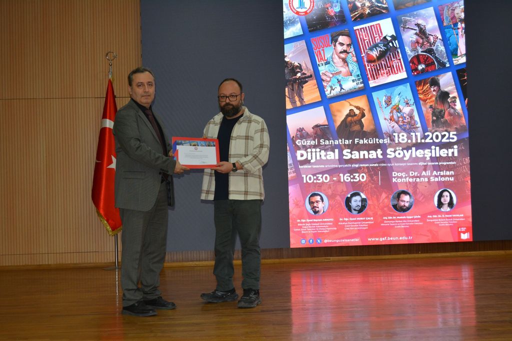 18 Kasım 2025'te Zonguldak Bülent Ecevit Üniversitesi'nde düzenlenen "Dijital Sanat Söyleşileri" etkinliğine Grafik Bölümü öğretim elemanı Arş.Gör.Dr. Mustafa Uygur ÇEVİK davetli konuşmacı olarak katılmış ve video sanatı, arttırılmış gerçeklik gibi dijital sanat uygulamaları konularında sunum yapmıştır.