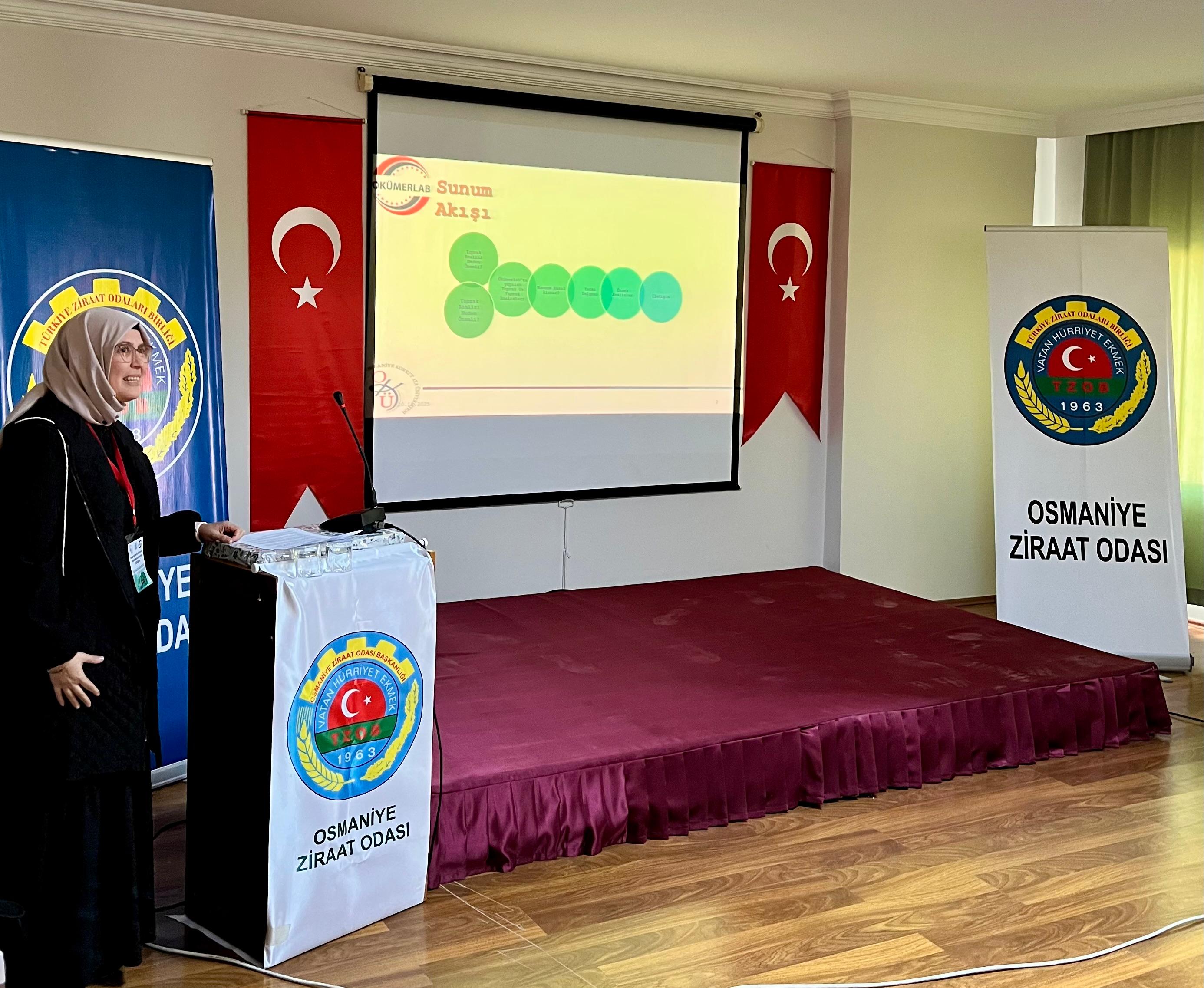20 Kasım 2025’te Osmaniye Korkut Ata Üniversitesi BİDEP Projesi kapsamında düzenlenen “Tarımda Yenilenebilir Enerji Kullanımı ve Faydaları Bilgilendirme Günü”, sektör paydaşlarını bir araya getirerek yenilenebilir enerjinin tarımsal üretimdeki rolüne ışık tuttu. Etkinlik; Rektör yardımcımız Sayın Prof. Dr. Mehmet CİHANGİR, Osmaniye Ziraat Odası Başkanı Sayın Ahmet Bahadır SEZGİN ve Öğr. Gör. Dr. Yeter SOLAK'ın açılış konuşmaları ile başladı, ardından Adana Zirai Üretim İşletmesi Tarımsal Yayım ve Hizmetiçi Eğitim Merkezi Müdür Yardımcısı Dr. Fatih BARUTÇU yenilenebilir enerji kaynaklarının tarım işletmelerine sağladığı verimlilik artışını aktarırken, Tarım ve Kırsal Kalkınmayı Destekleme Kurumu (TKDK) Osmaniye İl İrtibat Ofisi Uzmanı Faruk İNANDI IPARD kapsamında sunulan destekleri detaylandırdı. Programın devamında Kırsal Kalkınma ve Örgütlenme Şube Müdürü Salih KARAKÜÇÜK bireysel sulama desteklerini açıklarken, OKÜMERLAB’tan Öğr. Gör. Dr. Berna FARSAK toprak ve yaprak analizlerinin sürdürülebilir tarım için önemini vurguladı. Etkinlik, OKÜMERLAB Müdürü Prof. Dr. Hande Demir’in kapanış konuşması ve teşekkür belgesi takdimiyle sona erdi.