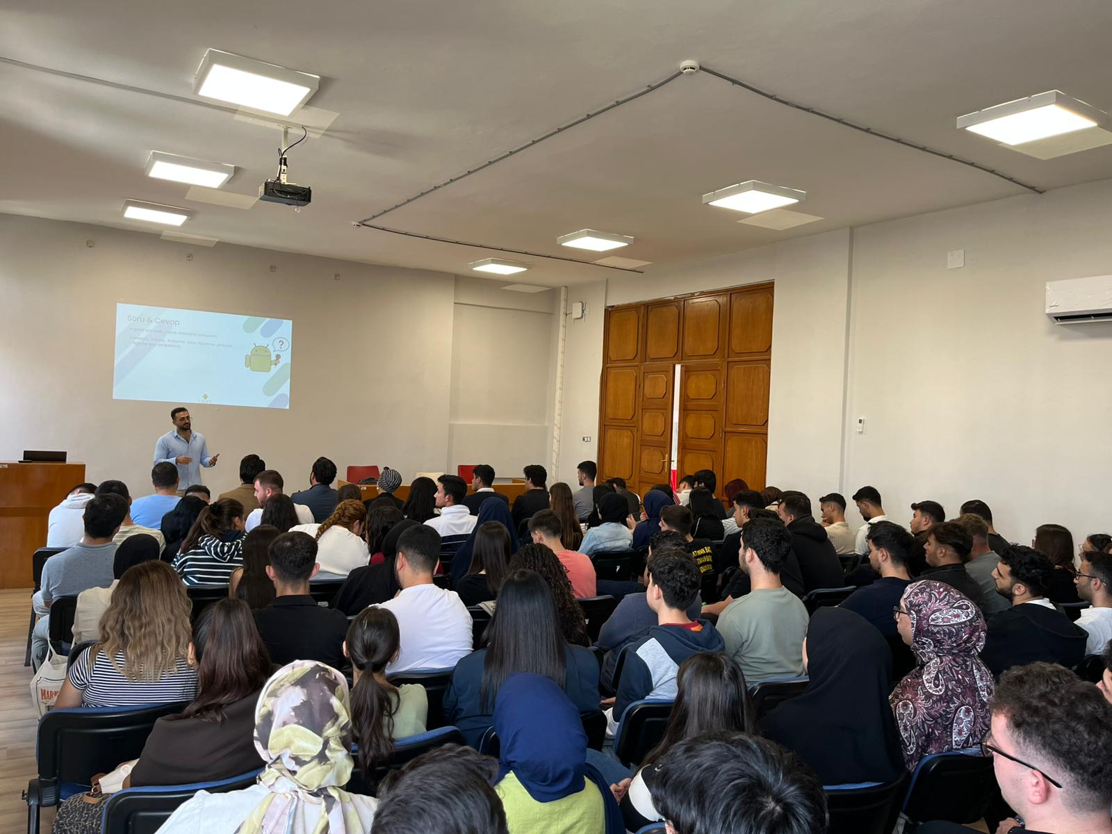 Seminerin konuşmacısı ve bölüm mezunu Bahadır Kayış, yazılım sektöründeki tecrübelerini öğrencilerle paylaşarak Android mobil uygulama geliştirme süreçleri hakkında önemli bilgiler aktardı. Katılımcılar, mobil yazılım dünyasındaki güncel teknolojiler ve uygulama geliştirme adımları hakkında bilgi edinme fırsatı buldu.