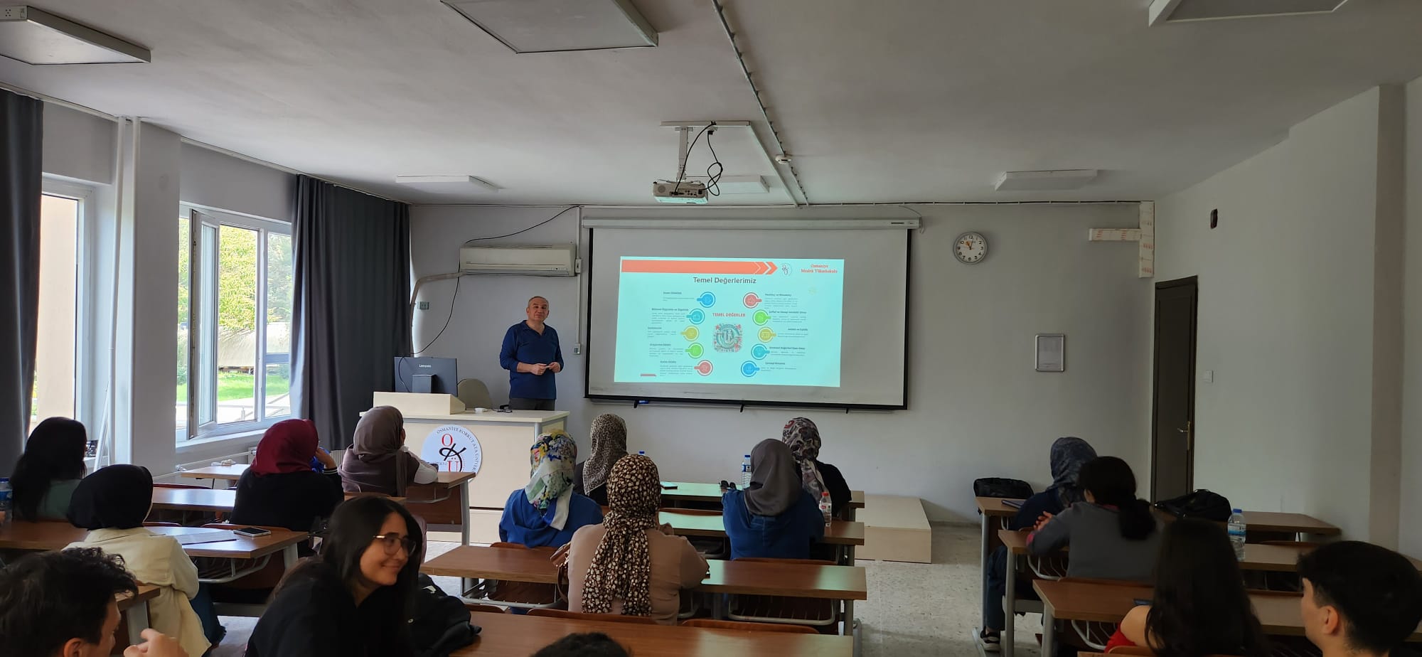 Yapılan etkinlikte, öğrencilerimize Kurumsal Akreditasyon Programı (KAP) hakkında bilgiler verildi. Bölüm Başkanı Doç. Dr. Halil ÖZDEMİR tarafından Üniversitemizin vizyonu, misyonu, ihtisas üniversitesi oluşumuz, kurumsal değerlerimiz, kurumsal politikalarımız, temel değerlerimiz, stratejik planı ile kuruluşundan bu zamana kadar süreçteki gelişmeler hakkında bilgiler verilerek, Yükseköğretim Kalite Kurulu'nun (YÖKAK) temel görevleri ile kalite ve kalite güvence sistemi anlatılmıştır. KAP değerlendirme süreci basamakları ve PUKÖ döngüsü hakkında detaylı bilgiler verilmiş, Kurumsal Dış Değerlendirme ve Akreditasyon Ölçütleri kapsamında akredite olabilmek için alınması gereken puanlar hakkında değerlendirmelerde bulunulmuştur.