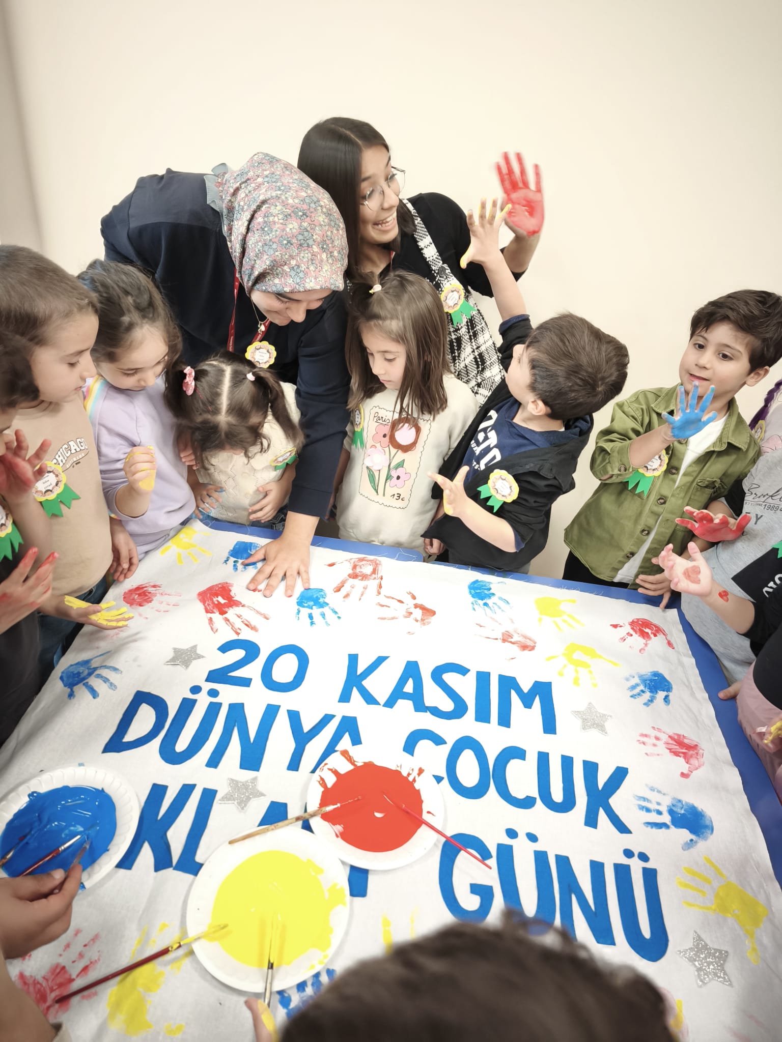Programın devamında, üzerinde “20 Kasım Dünya Çocuk Hakları Günü” yazılı çarşafa çocuklarla birlikte el baskısı yapılarak renkli ve anlamlı bir çalışma ortaya çıkarıldı. Son olarak okul çevresinde “Benim de Haklarım Var” temalı kısa bir yürüyüş gerçekleştirilerek günün önemi vurgulandı.