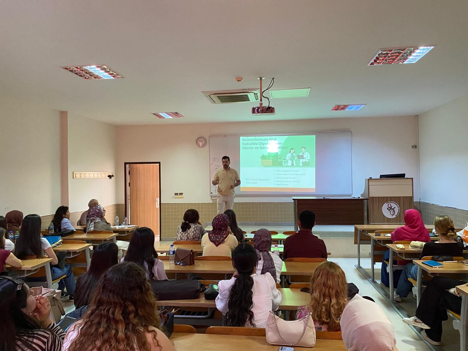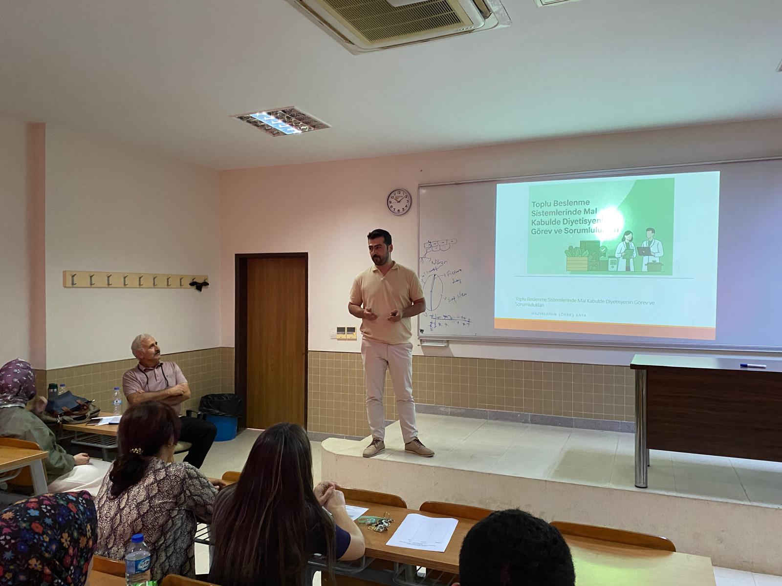 Osmaniye Polisevi'nde kurum diyetisyeni olarak çalışmakta olan mezunlarımızdan Ökkeş Kaya öğrencilerimize yönelik söyleşi gerçekleştirmiştir. Öğrencilerin ilgi ve katılım gösterdikleri söyleşi programında mezunumuz öncelikle üniversite ve eğitim hayatı hakkında bilgiler verdi ve deneyimlerini paylaştı. Kurum diyetisyeni olmak için yapılması gerekenleri detaylı bir şekilde aktardı ve ayrıca öğrencilerimizin staj, çalışma koşulları, ücretler gibi konularda da merak ettikleri sorulara cevaplar verdi. Onlara, sürekli öğrenmeye açık olmaları, eğitim ve sosyal yaşamları arasında bir denge kurmaları ve networklerini geliştirmeleri gibi konularda da önerilerde bulundu.