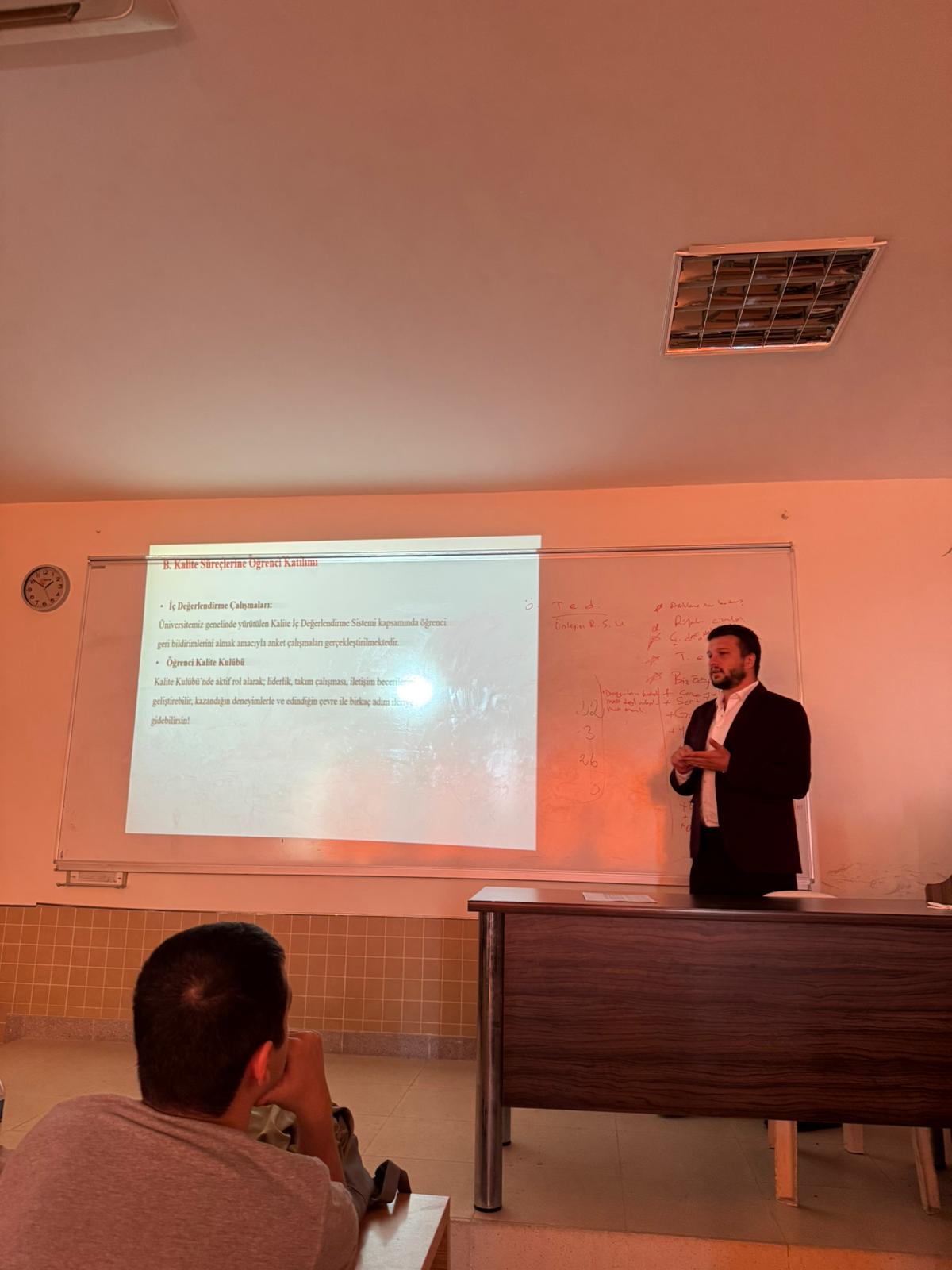 Osmaniye Korkut Ata Üniversitesi Fizyoterapi ve Rehabilitasyon Bölümü öğrencileri, Öğr. Gör. Dr. Ömer Lekesiz tarafından sunulan ve üniversitenin akademik kalitesini, öğrenci odaklı hizmetlerini ve gelişim fırsatlarını kapsayan kapsamlı bir "Öğrenci Kalite Bilgilendirme Sunumu"na katıldı. Sunumun ana odağında, öğrencilerin diplomanın ulusal ve uluslararası kabul edilebilirliğini artıran akreditasyon süreçleri yer alırken , öğrencilerin akademik hayatlarını zenginleştiren çift anadal (ÇAP) ve yan dal programları , yurt içi ve yurt dışı deneyimi sunan Erasmus+, Mevlana ve Farabi değişim programları gibi önemli eğitim ve akademik süreçler detaylıca tanıtıldı. Ayrıca, daha önce kazanılmış bilgi birikimi, dersler veya sertifikaların tanınmasını sağlayan "Önceki Öğrenmenin Tanınması" sistemi ve öğrencilerin sosyal, kültürel, sportif faaliyetlerini belgeleyen, hatta İngilizce düzenlenebilen Sosyal Transkript uygulaması anlatıldı. Kariyer planlama ve mesleki gelişimlerine destek olmak amacıyla CV hazırlama ve mülakat teknikleri gibi konularda profesyonel danışmanlık sağlayan Kariyer Geliştirme Uygulama ve Araştırma Merkezi'nin (KAGEM) hizmetleri vurgulanırken, üst sınıf öğrencileri ile yeni gelenler arasındaki tecrübe paylaşımını sağlayan gönüllü Mentörlük Uygulaması teşvik edildi. Sunumda, öğrencilerin Üniversite Kalite Komisyonu, Birim Kalite Komisyonları ve Kalite Elçisi Programı aracılığıyla karar alma süreçlerine doğrudan katılım yolları aktarılırken; görüş, öneri ve şikâyetlerini iletebilecekleri dijital iletişim kanalları , Akademik Danışman Görüşme Saatleri ve randevu sistemi , yıllık memnuniyet anketleri ile ders ve öğretim elemanı değerlendirme anketleri gibi geri bildirim mekanizmalarının önemi belirtildi. Son olarak, SKS bünyesinde sunulan tamamen ücretsiz Psikolojik Danışma ve Rehberlik Birimi hizmetleri , sıfır atık, yeşil kampüs uygulamaları ve toplumsal katkı faaliyetlerine katılım imkanları öğrencilere sunularak, üniversite yaşamlarının her yönüyle desteklendiği bir kez daha vurgulandı.