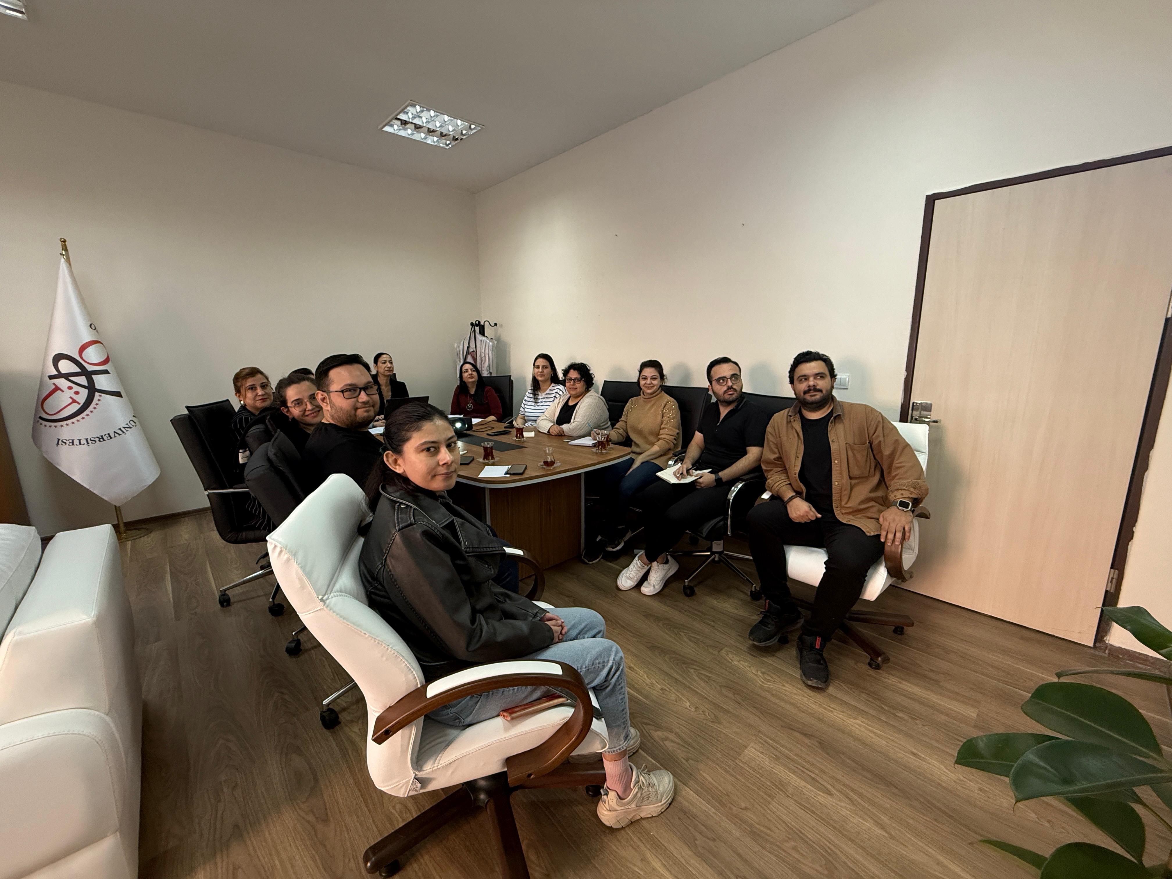 05 Kasım 2025 Çarşamba günü saat 11.30’da Fakültemiz Dekanlık Makamında gerçekleştirilen toplantı, Sağlık Bilimleri Fakültesi Dekanı Prof. Dr. Hüsniye Sağlıker başkanlığında; Dekan Yardımcıları Doç. Dr. Ayşe İnel Manav ve Doç. Dr. Zeynep Tekin Babuç ile fakültemiz öğretim görevlileri ve araştırma görevlilerinin katılımıyla yapıldı.