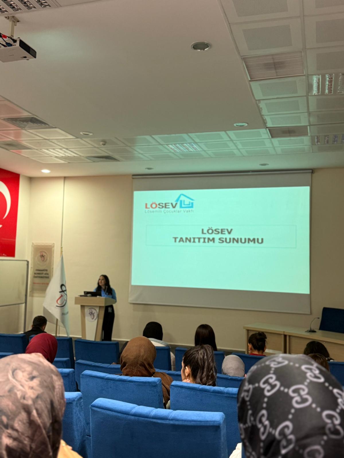 LÖSEV Adana Şubesi personelleri Büşra KAYNAK ve Şule ARTAM OKÜ Sağlık Hizmetleri Meslek Yüksekokulu programlarından Yaşlı Bakım Programı öğrencileri ve öğretim elemanlarına "LÖSEV Fayda Etkinliği" düzenledi.