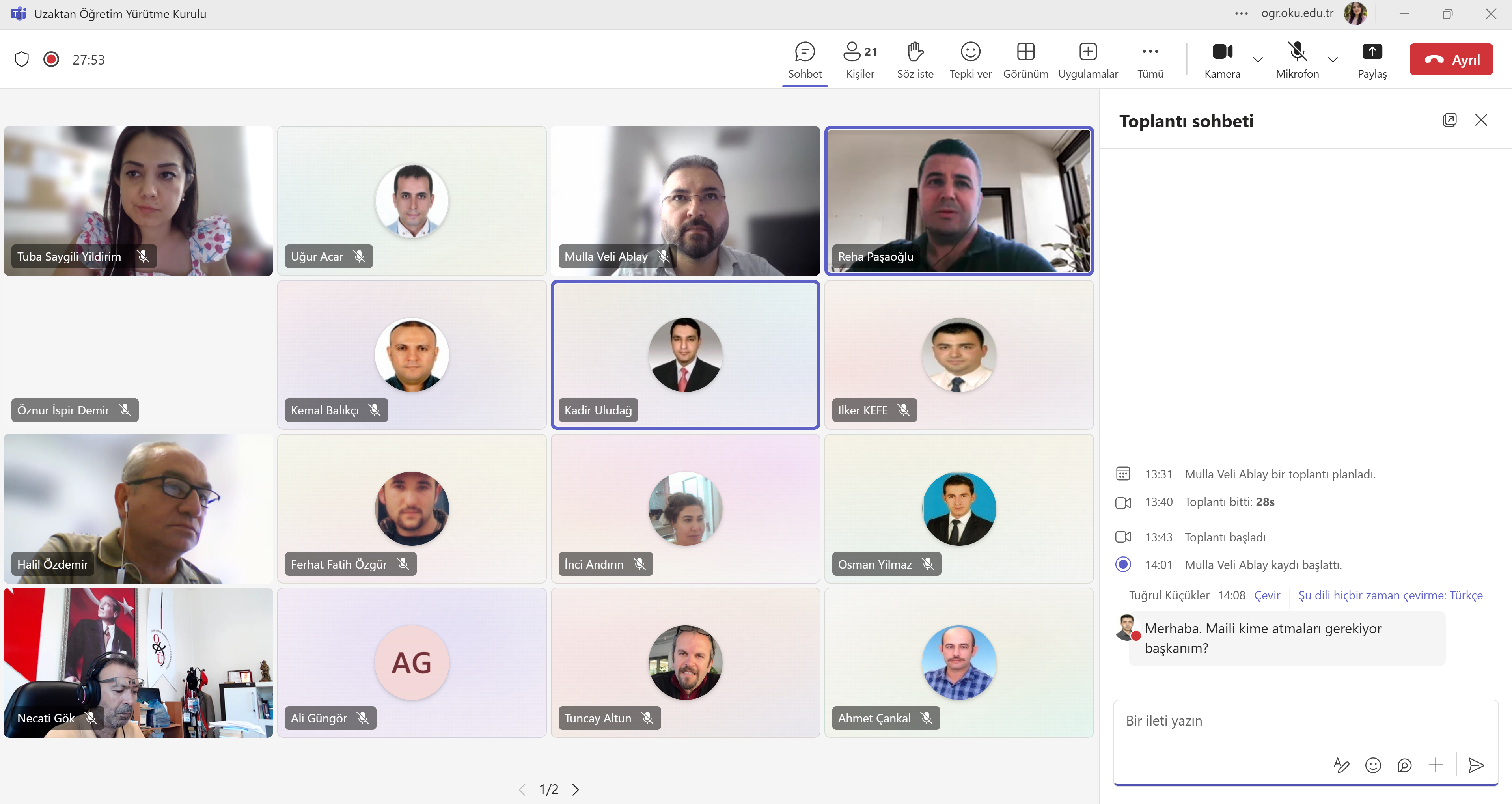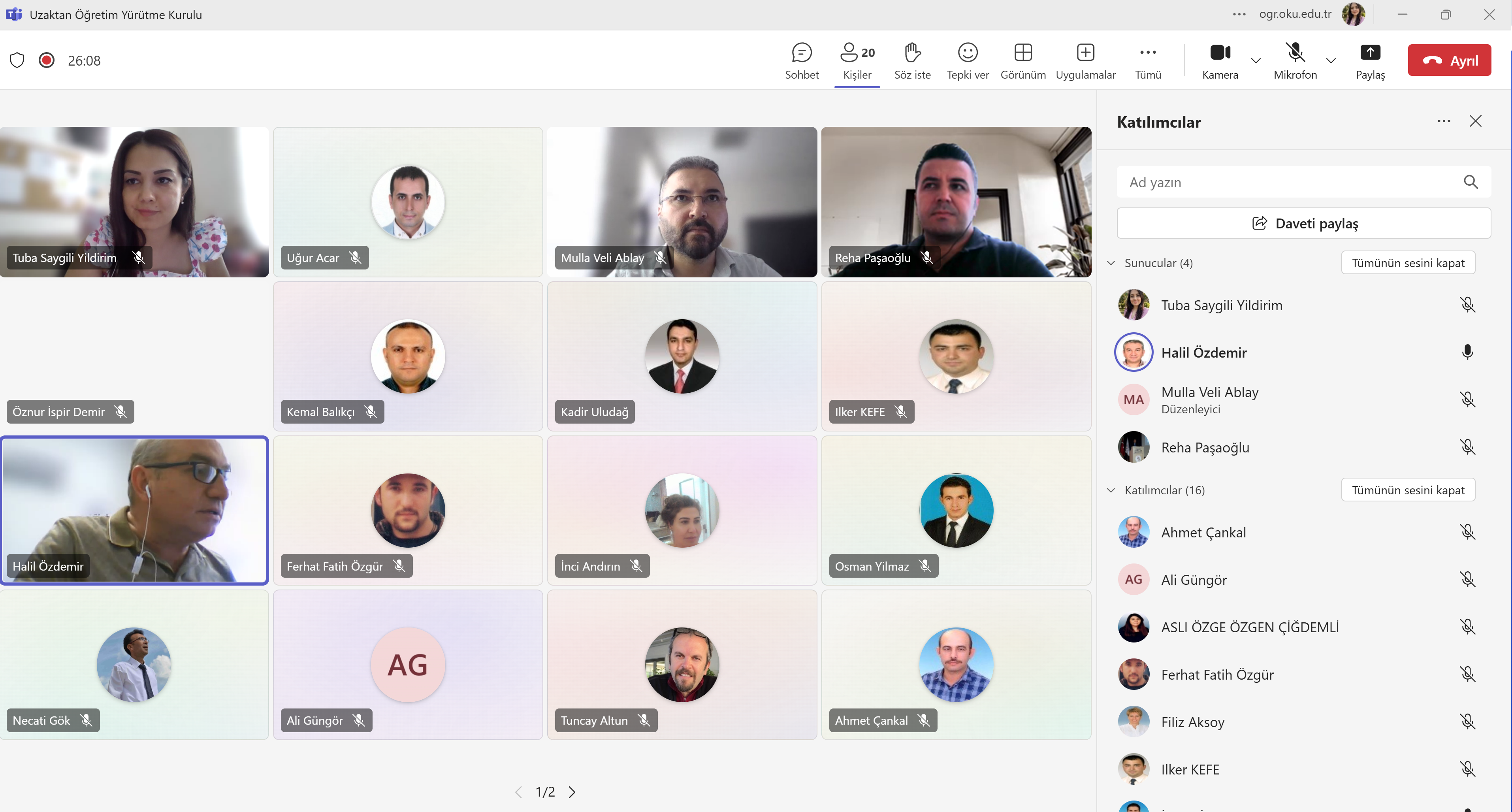 02 Ekim 2025 Perşembe günü saat 14:00’ da aşağıdaki gündem maddeleri doğrultusunda çevrimiçi (online) olarak Uzaktan Öğretim Yürütme Kurulu toplantısı gerçekleştirildi. Toplantıya Uzaktan Eğitim Uygulama ve Araştırma Merkezi müdürü Doç. Dr. Halil ÖZDEMİR, Uzaktan Öğretim Yürütme Kurulu üyeleri ve OKÜUZEM akademik personelleri katılmıştır.