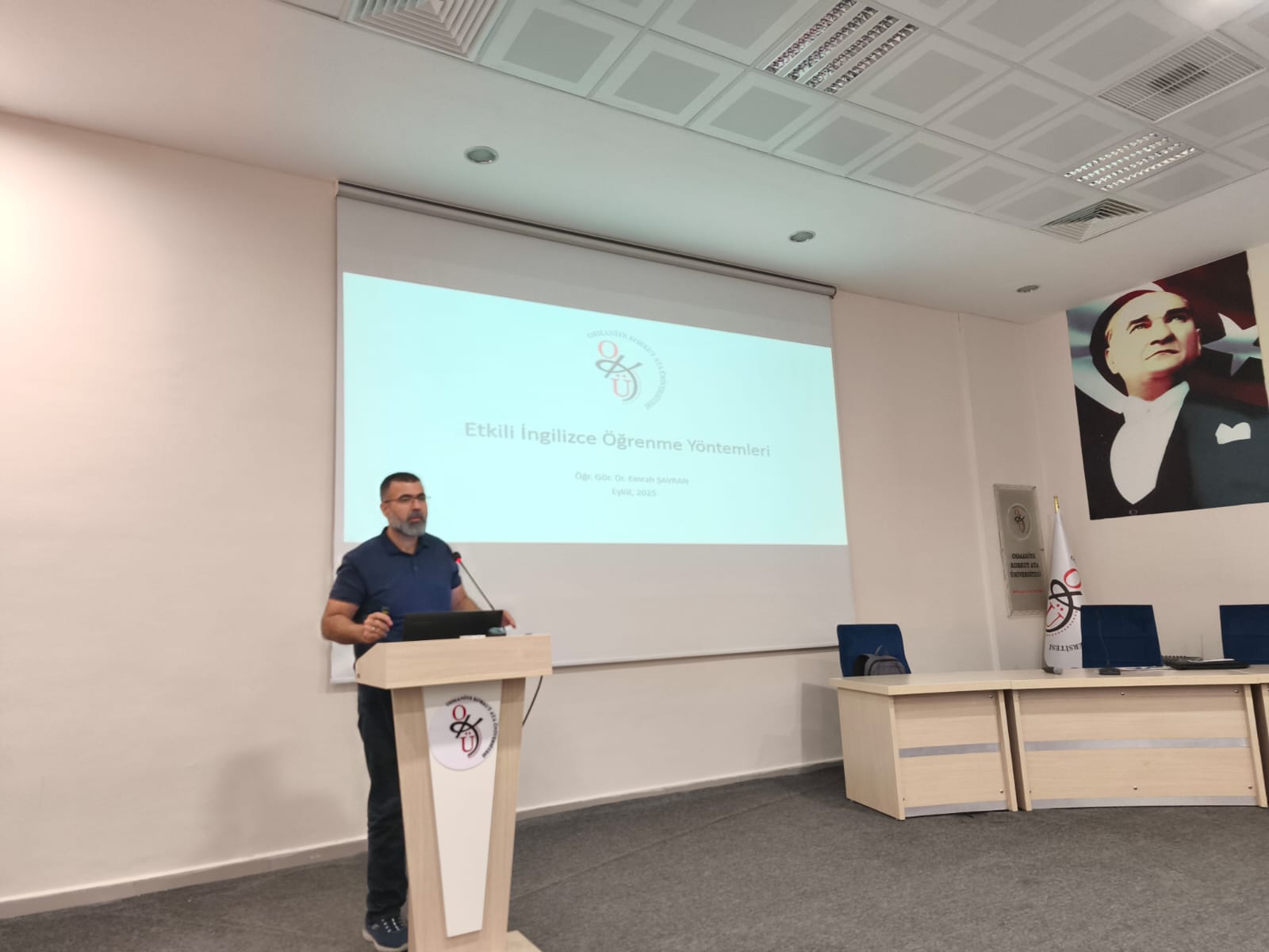 Yabancı Diller Yüksekokulu (YADYO) tarafından düzenlenen Oryantasyon Programı (SFL Orientation Days), 16-17 Eylül 2025 tarihlerinde Osmaniye Korkut Ata Üniversitesi Kütüphanesi Toplantı Salonu’nda gerçekleştirildi. Yeni akademik yıla hazırlık niteliği taşıyan program Yüksekokul Müdürü Doç. Dr. Ceyhun Yükselir'in açılış konuşması ile başladı. Devamında Müdür Yardımcılarımız Öğr. Gör Fatih Ercan ve Öğr. Gör. Mehmet Durmaz tarafından öğrencilere, YADYO’nun işleyişi, ölçme ve değerlendirme süreçleri ile çevrimiçi platformların kullanımı hakkında kapsamlı bilgiler sunuldu.